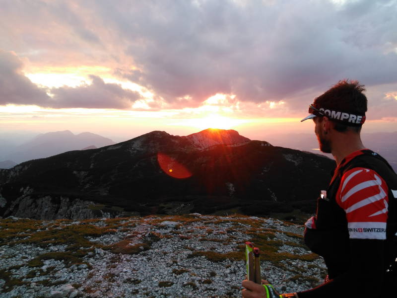 Začeli smo z goro kralja Matjaža, Peco. Pri koči pod njo smo naredili krajši postanek in ravno na vrhu ujeli čudovit sončni zahod. Gora je terjala svoj davek, Žiga se je namreč zaradi bolečin v nogi odločil, da se vrne nazaj in dokončanje poti prepusti kamniški ekipi. Tema je počasi legala na hribe, mi trije pa smo s čelkami nadaljevali pot s spustom s Pece proti Koprivni in od tu proti Olševi. Ujeli smo štiri tekače, ki so bili na isti poti, si izmenjali par besed in zagrizli v hrib. Na vrhu grebena sendvič in naprej proti Slemenu, od tu pa proti Raduhi. Ta nas je pošteno izmučila, še posebej spust, poln spolzkih kamnov in skal. Ob pol štirih zjutraj smo pritekli do Koče na Loki, tu pa presenečenje. Koča je bila razsvetljena in odprta. Lokalni mladci so ga pač žurali, prijazna gospodična za šankom pa nam je z veseljem postregla s tremi velikimi skodelami tople goveje juhe. Nihče od nas še ni pil boljše, najbrž zato, ker smo bili na poti že skoraj deset ur in so kilometri naredili svoje. Čakal nas je dolg greben proti Smrekovcu, vmes pa začudeni pogledi krav, ki so, tako kot mi, čakale dan in si najbrž mislile svoje. Spet se je prikazalo sonce, po tleh jutranja rosa in po treh urah in pol smo v koči pod Smrekovcem jedli ‘pisker’ in štrudl. Kako sta bila dobra. Samo še Uršlja gora. A ni bila tako blizu, čeprav se je zdela kot na dlani. Že pot čez gozdove se je vlekla, na koncu pa še v breg. In končno pogled na celotno pot, ki je bila za nami, z vrha se vidi celoten krog, s ponosom smo se ga nagledali. Do Črne nas je pripeljal dolg spust in na koncu še nekaj ‘normalne’ ceste. Pa smo bili spet pri avtomobilih, zadovoljni in utrujeni.