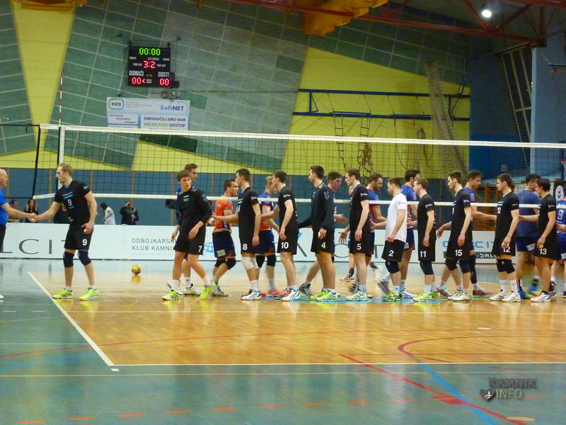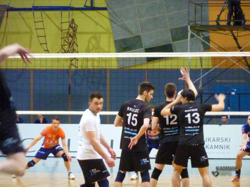 Na krilih zmage v drugem nizu so Kamničani z dobro igro nadaljevali tudi na začetku tretjega, ko so na prvi tehnični odmor odšli s prednostjo dveh točk. Z blokom Štembeergar Zupana je bilo 10:7, zato se je Kotnik odločil za prvi menjavo v svoji ekipi in Kozlowskega zamenjal z Matijo Jerebom. Menjava se je gostom obrestovala, saj so z delnim izidom 7:2 prišli do prednosti dveh točk. Domači trener Brumen je odpočil Tončka Šterna in v igro poslal Primož Vidmarja, ki je po vrnitvi na igrišče na petnajsti točki izid izenačil. Tudi po zaslugi napak na servisu domače ekipe so gostje z asom Maria Koncilje, ki je v bloku zamenjal Dolegombaija, povedli z 21:18, z blokom Klobučarja pa že za štiri točke. A niz s tem še ni bil odločen, kajti na servis Tineta Kvasa, ki je zamenjal Brulca, so domači odbojkarji povedli s 23:22, tako da je po polminutnem odmoru posegel še Bogdan Kotnik ter v igro vrnil Kozlowskega. Toda do zmage so vseeno prišli Ljubljančani, kajti Brusova napada nista končala v polju gostujoče ekipe.