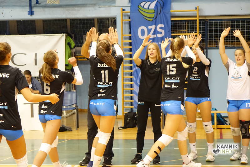 Borbene odbojkarice druge ekipe Calcit Volleyja se niso predale niti v tretjem nizu. V obrambi so reševale nemogoče žoge, dobro so igrale tudi v napadu, toda izkušnje, pa tudi kakovost so vendarle bile na strani prve ekipe, ki je na servis Špele Marušič kot prva prišla do treh točk prednosti (10:7). Po dveh uspešnih napadih Olivere Kostić je bilo 14:8 za prvo kamniško ekipo, ki ni popuščala. Na servis svoje kapetanke Kostićeve je pobegnila že za devet točk (19:10), s tem pa je bila tekma odločena.