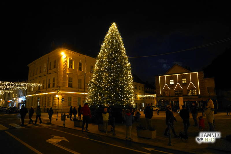 Skrita čast prižiga prazničnih luči je letos pripadla delavcem Komunalnega podjetja Kamnik, ki so, kakor vsako leto, poskrbeli za namestitev kakih šest in pol kilometra različnih lučk in druge praznične okrasitve, med katero še posebej izstopa izjemno lepo in košato ter z lučkami lepo okrašeno mestno novoletno drevo na Glavnem trgu, ki letos izvira od (vsaj nam) neznanega darovalca iz Podgorja, ki se mu lahko najlepše zahvalimo, kajti smreka je zares zelo lepa.