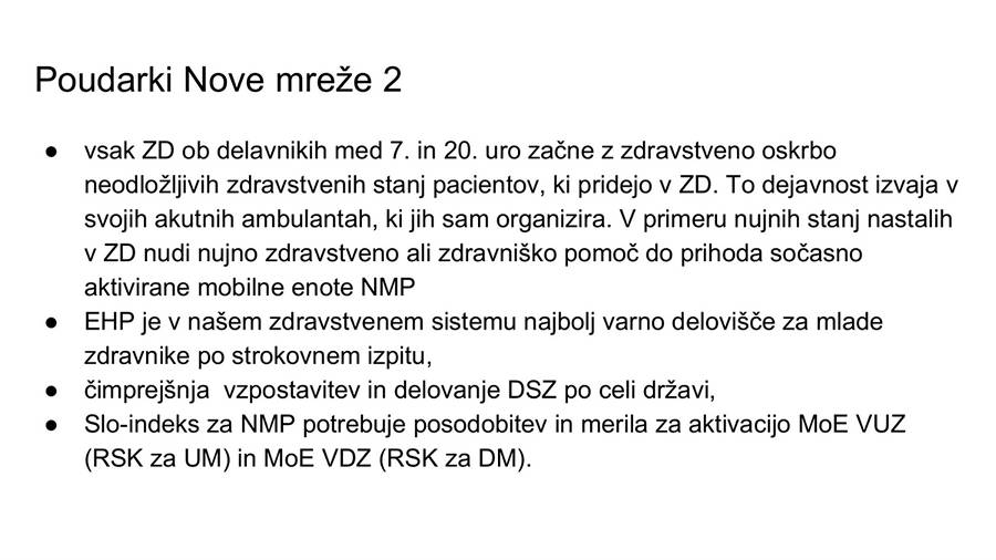 Omenjene navedbe smo sicer želeli preveriti tudi pri direktorici ZD Domžale Renati Rajapaksa, vendar v današnjem telefonskem pogovoru, rekoč, da gre za delovno gradivo, ki je še v obravnavi, vsega skupaj ni želela komentirati. Na naše vztrajanje, da časovnica spremembe predvideva že takoj po novem letu, pa je dejala, da je še cel mesec časa za usklajevanje vseh deležnikov.