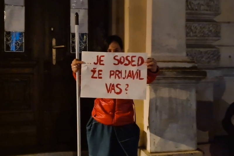 S transparenti opremljeni protestniki, ki so se, ob zvoku trobelj in piščalk, mirno sprehajali po pločniku med Glavnim trgom in sodiščem, so med mimoidočimi vzbudili kar nekaj pozornosti, njihovo početje pa je moralo nekomu (ponovno) iti pošteno na živce.