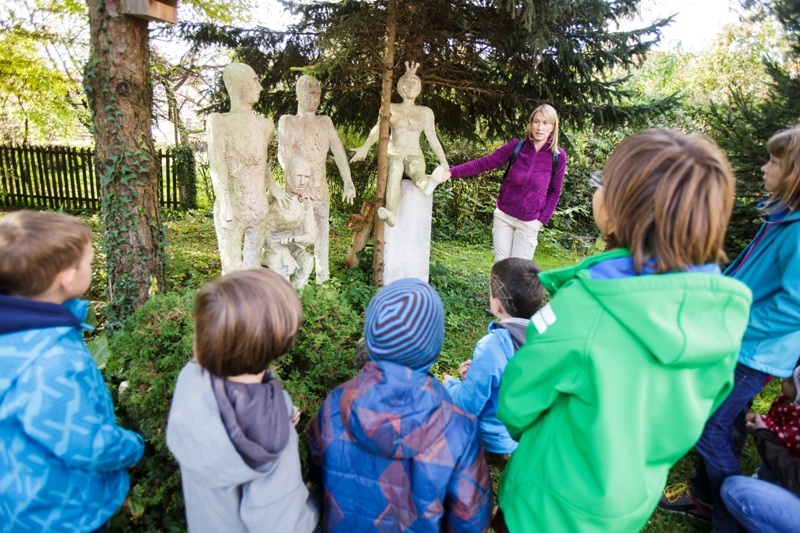 Pot nas je potem vodila po mestu do Sterletovega dvorišča, kjer kupaj obnovili pravljico o Veroniki, ki je najbolj značilen kamniški simbol. Srečali smo se tudi z umetnostjo Dušana Sterleta – z njegovo kiparsko upodobitvijo Veronike in slikami s slovenskimi umetniki. Obisk zelenega dvorišča, ki jih za šutenskimi fasadami skrivajo meščanske hiše, je bil lepo doživetje.