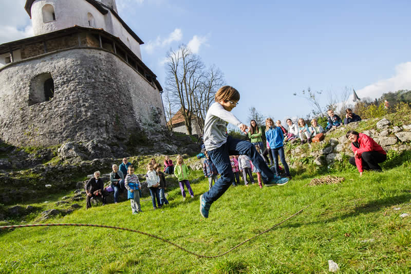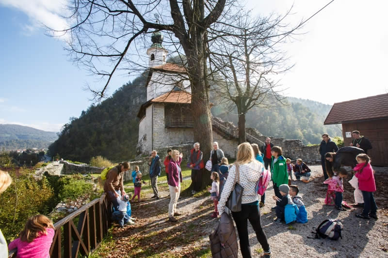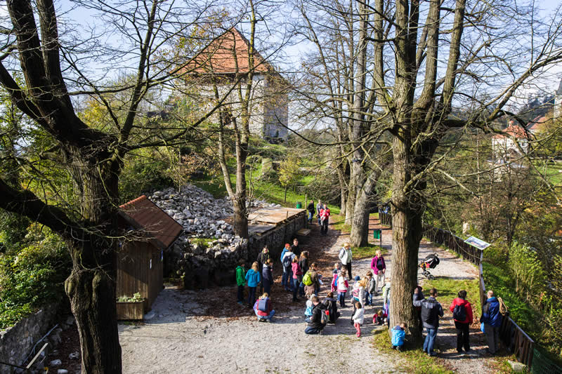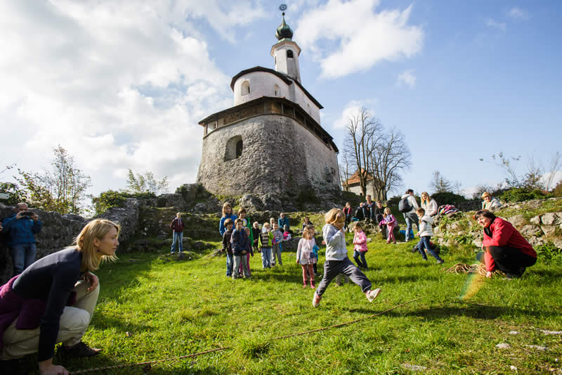Pot nas je vodila tudi na Mali grad, od koder smo opazovali bližnjo in daljno okolico, ki smo jo povezali z znanimi pravljicami in povedkami: o Slevški roži pod Kamniškim vrhom, to je podor, ki ga je zakrivil lintvern (zmaj), o ukletniku, ki je toliko časa valil kamenje, da so nastale kamniške planine, o cerkvi svetega Jurija pri jezeru, v katerem je menda svoje čase tudi živel zmaj … Na koncu smo se tudi igrali, saj je temelj otroškega doživljanja sveta in tudi pravljic predvsem igrivost. Končali smo spet v Kavarni Rotovž, kjer se je pravljična pot zaključila z delavnico izdelovanja zmajev.
