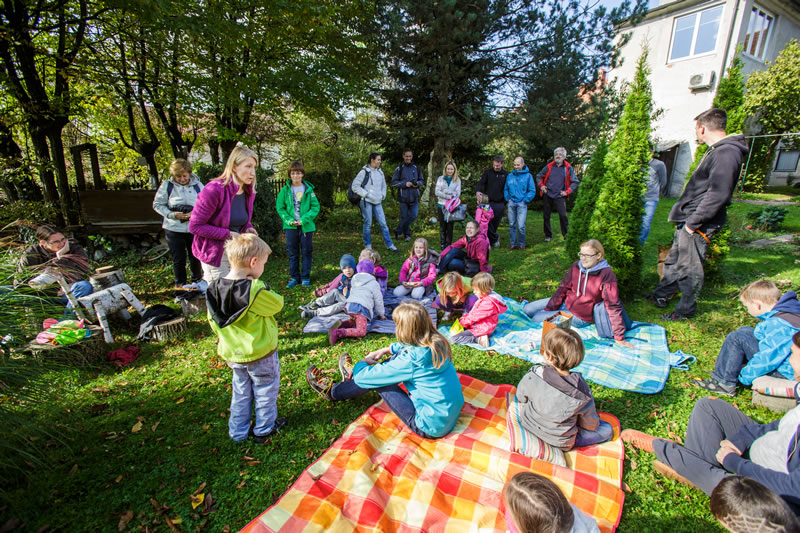 Zahvaljujemo se kamniškemu slikarju Dušanu Sterletu, ki nam je odprl vrata na svoje dvorišče, in Darku Maležu, ki je odstopil in celo pripravil prostor za pripovedovanje pravljic in delavnico.