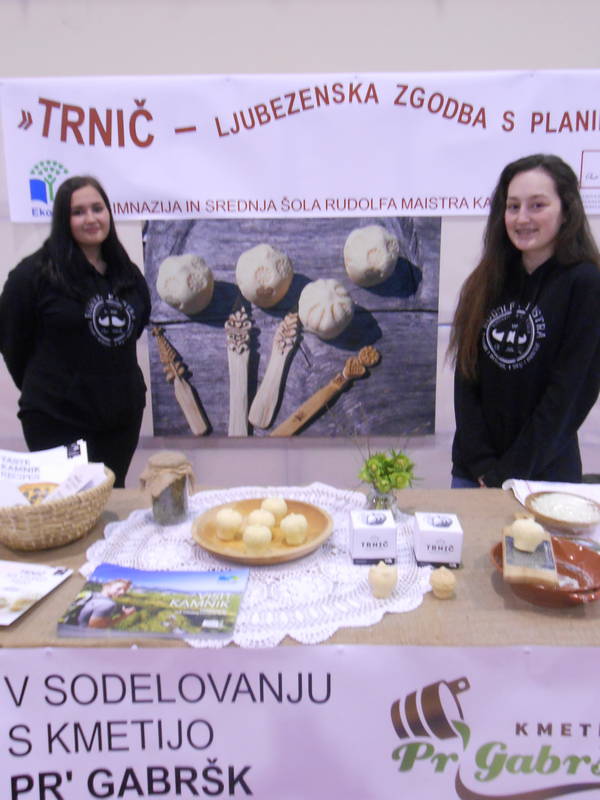Dijaki drugega letnika smeri ekonomski tehnik, Teja Božič, Tjaša Repas, Matija Jerič, Nik Štebe in Amar Rene Vidmar so pod mentorstvom profesorice Vitke Voljč in Viktorije Pirš na stojnici z naslovom »Trnič – ljubezenska zgodba s planine« predstavili tradicionalni trdi sir iz Velike planine.