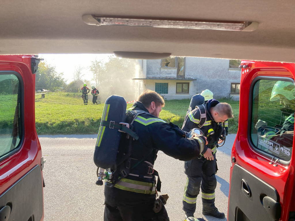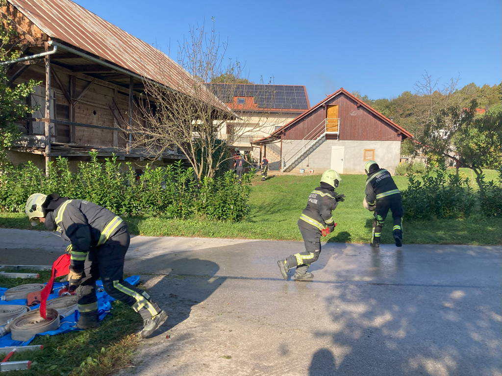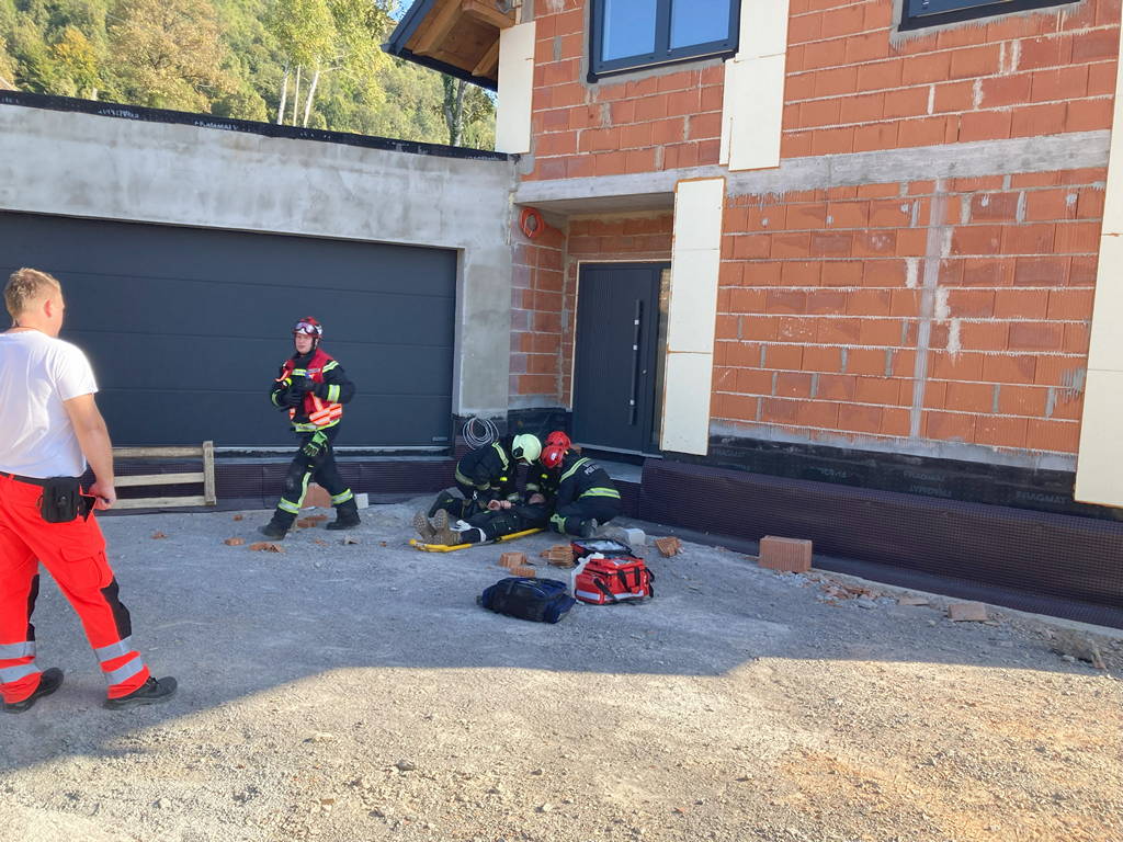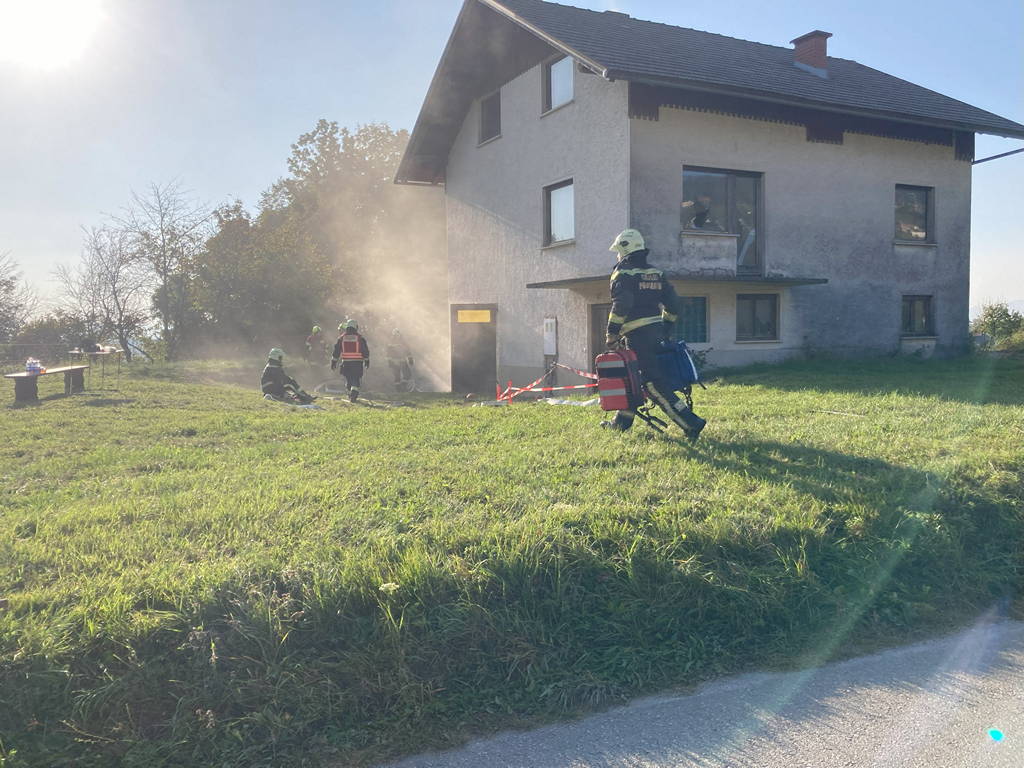 Prva točka je od ekipe zahtevala pogasitev namišljenega požara v kleti stanovanjskega objekta, iznos ponesrečenca ter odstranitev nevarnosti iz kleti.