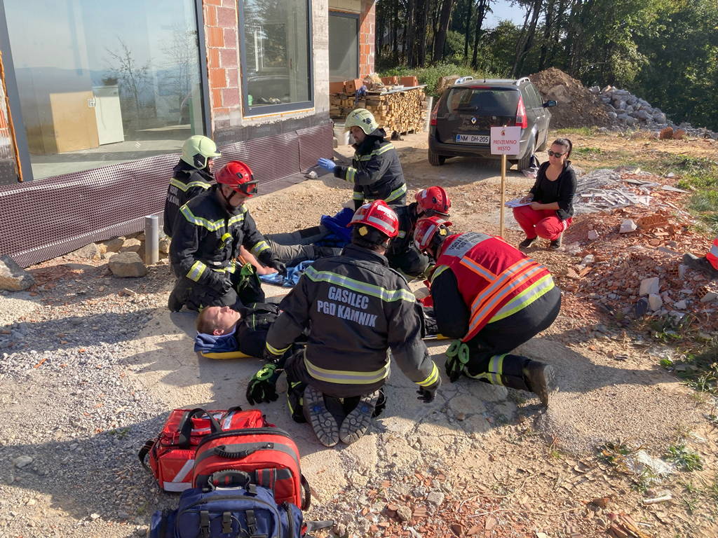 Na tretji točki se je preverjalo znanje iz prve pomoči. Scenarij je prikazoval delovno nesrečo na gradbišču, kjer se sta se sočasno poškodovala dva delavca, ekipa Nujne medicinske pomoči pa je bila ravno tisti čas zasedena, zato je vsa oskrba poškodovanih prešla na gasilce.