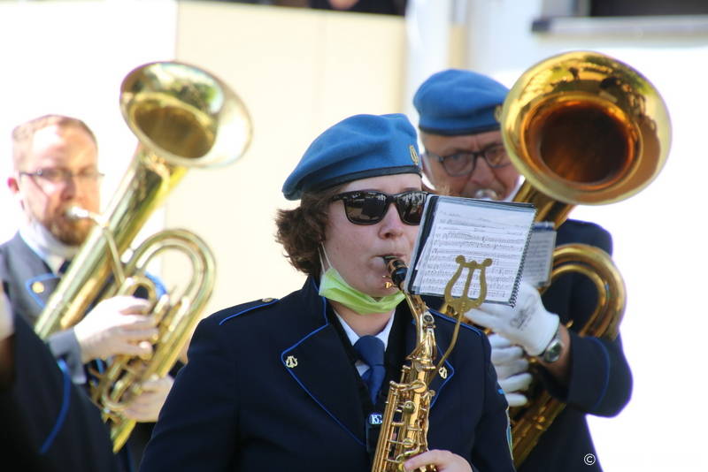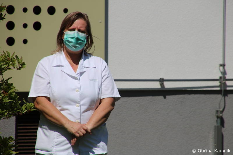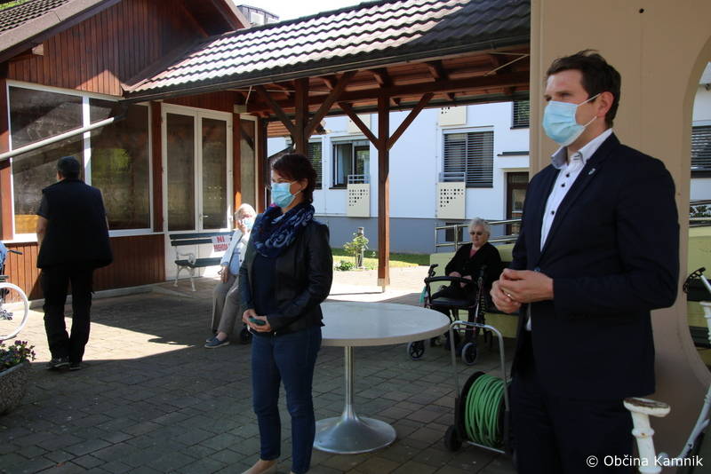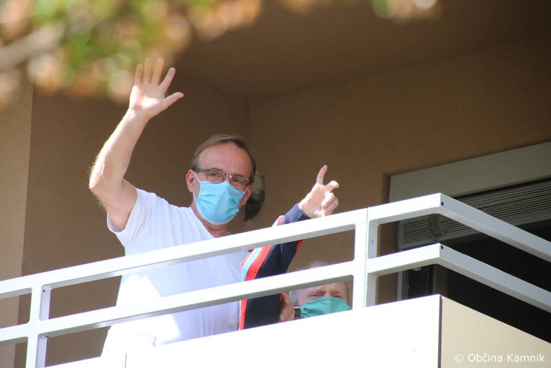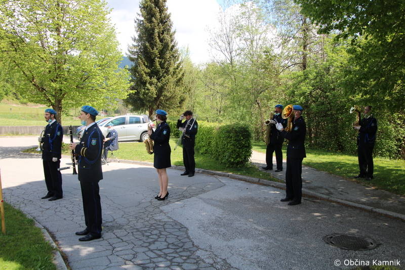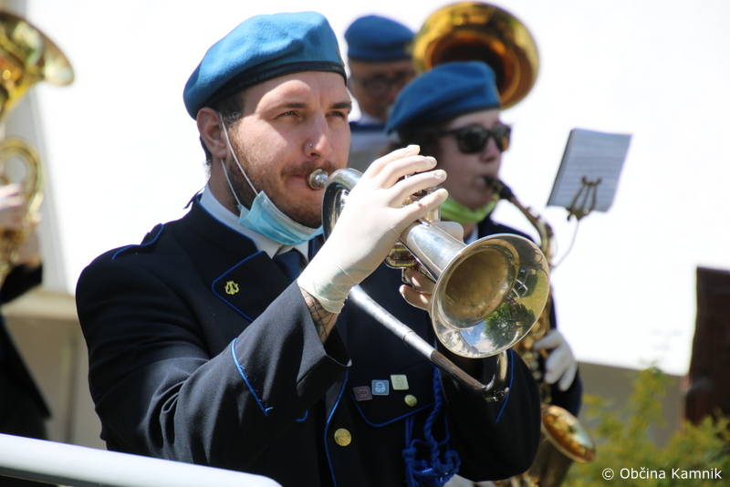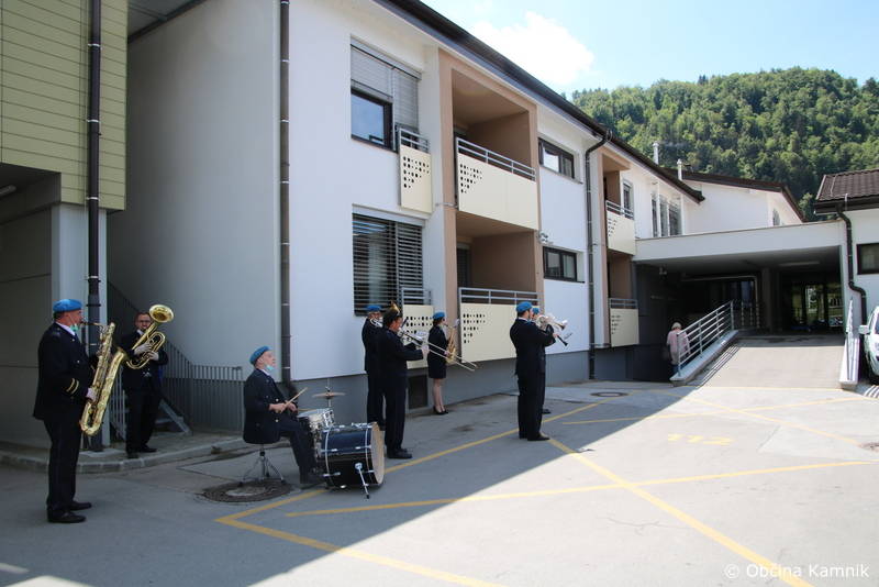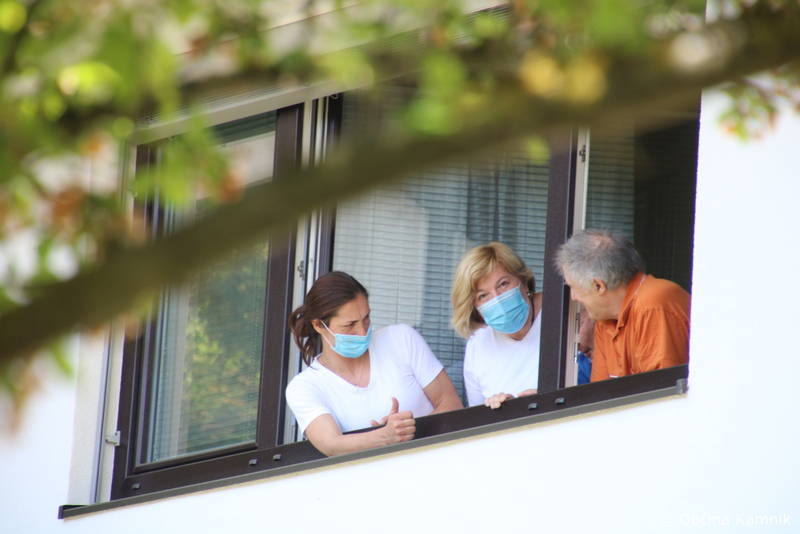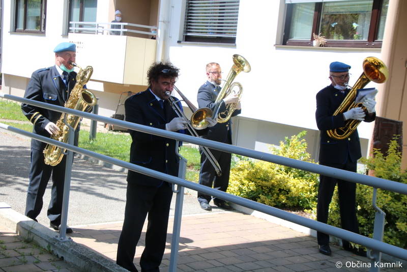 Ker so stanovalke in stanovalci že skorajda dva meseca brez obiskov najbližjih, so se godbeniki Mestne godbe Kamnik, tokrat v komornem sestavu, odločili, da jim namenijo nekaj udarnih ritmov in pred prvomajskimi prazniki polepšajo dan s koračnicami. Dogodku sta prisostvovala tudi župan Matej Slapar in direktorica Doma starejših občanov Kamnik Maja Gradišek.