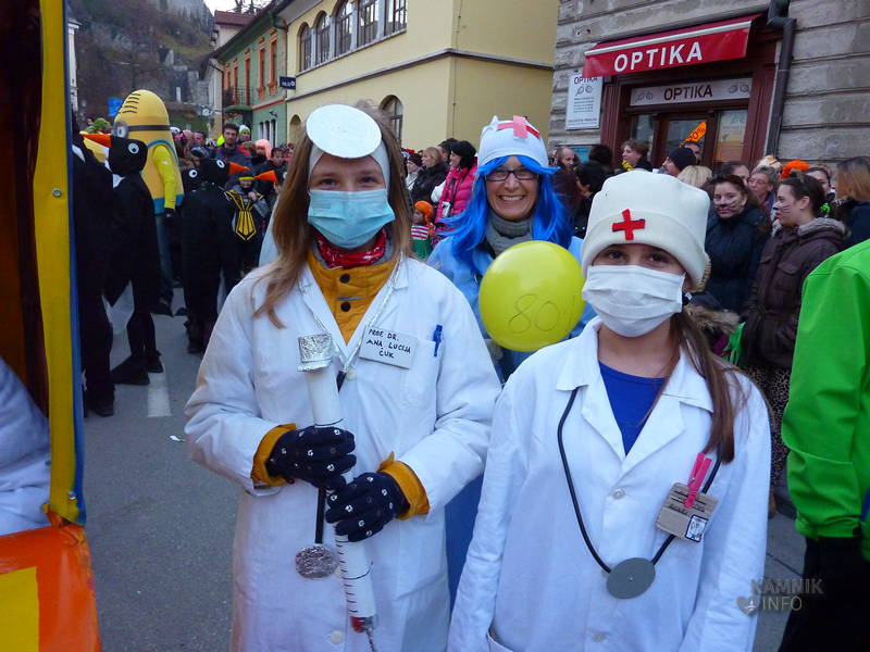 Med maškarami je bilo opaziti najrazličnejše like, poleg mamuta, pingvinov, rakov in mačk, tudi aktualno kamniško urgenco, kamniško majoliko ter še kopico drugih, ki si jih lahko ogledate v naši tokratni, res obsežni in bogati fotogaleriji.