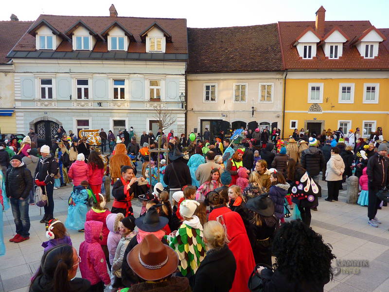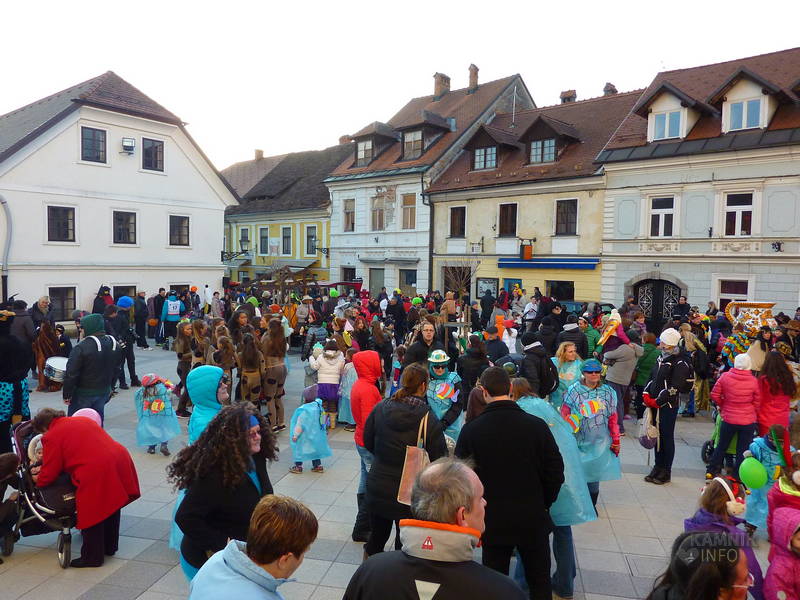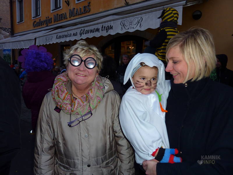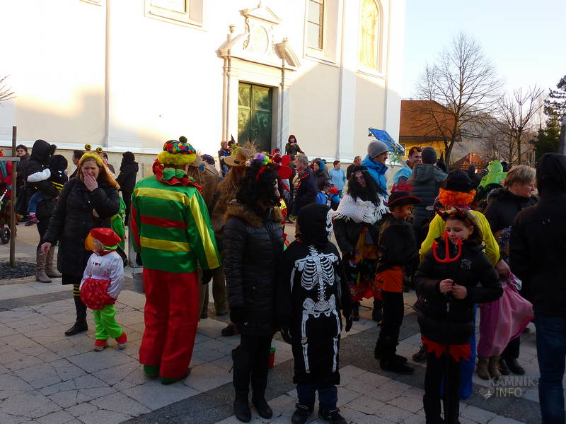 Že dopoldne so se v maškare vseh barv in oblik prelevili otroci in vzgojiteljice vrtca Antona Medveda, enote Sneguljčica in Marjetica in učenci osnovne šole 27. julij ter s plesom in petjem na Glavnem trgu preganjali zimo in klicali pomlad. Pustne šeme so pozdravili župan občine Kamnik, Marjan Šarec, v.d. direktorja Zavoda za turizem in šport v občini Kamnik, Franci Kramar in ravnateljica VVZ Antona Medveda, Renata Hojs.