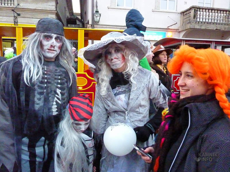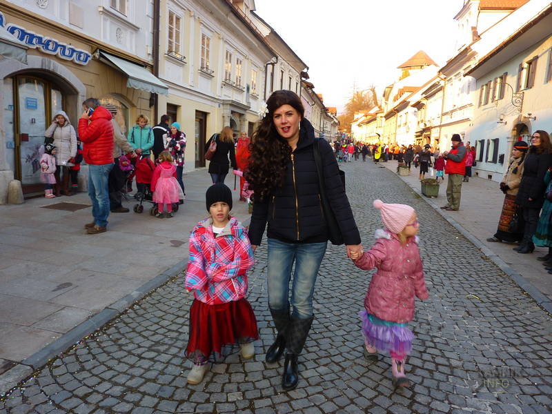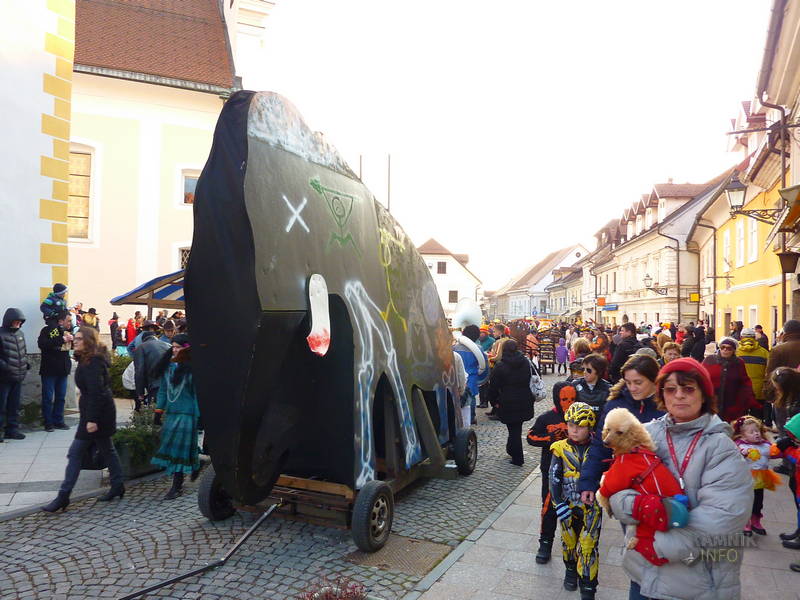 Maškare so se začele okrog pol petih zbirati pred šutensko cerkvijo, kjer so imele zbirališče, nekaj po peti pa so, z mamutom na čelu, krenile proti mestnemu Glavnemu trgu, kjer so jih čakali krofi in zabava ter seveda tudi stroga žirija, ki je izbrala najlepše maske v različnih kategorijah.