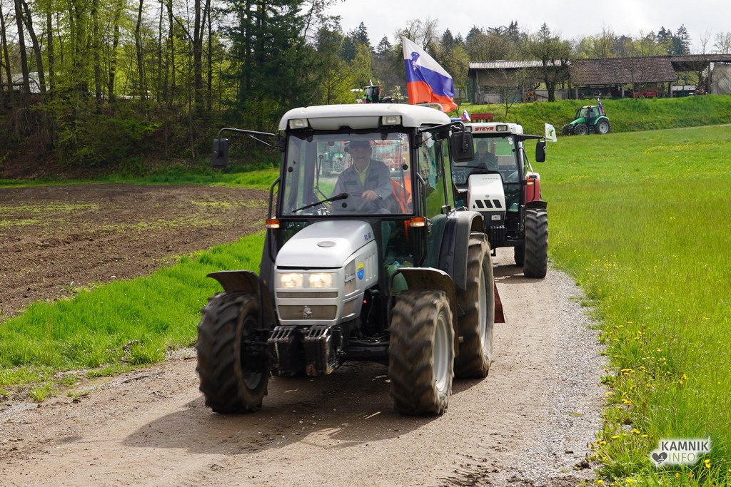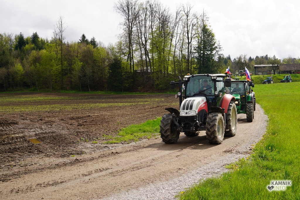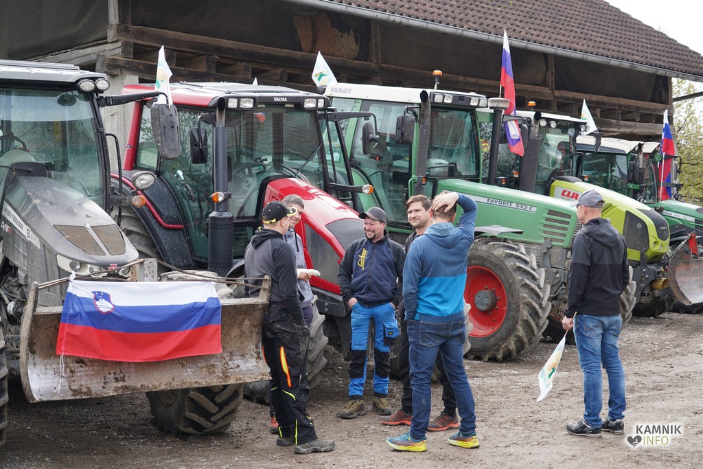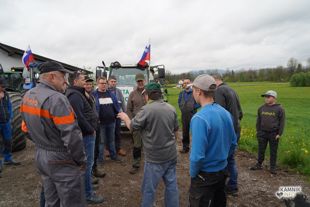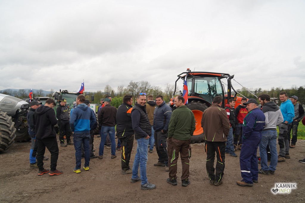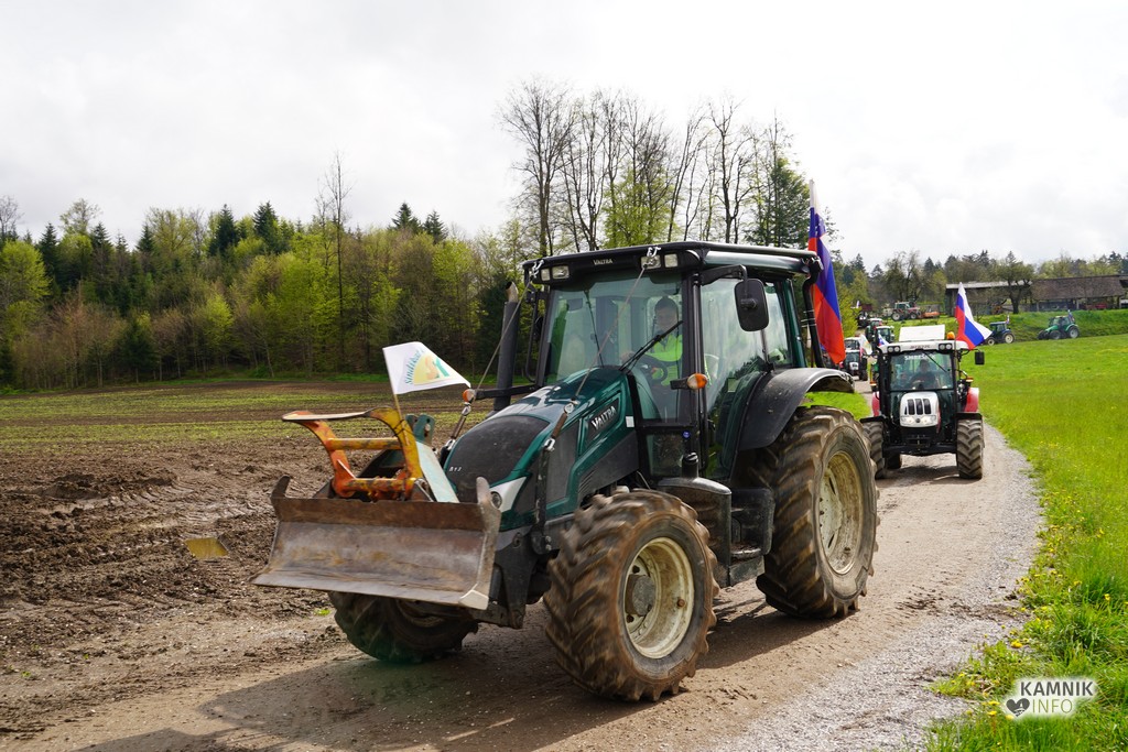 Na današnji protestni shod v Ljubljano se je s svojimi traktorji podalo tudi kakih trideset kamniških kmetov, ki so se dopoldne zbrali v Volčjem Potoku.