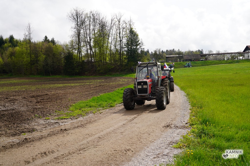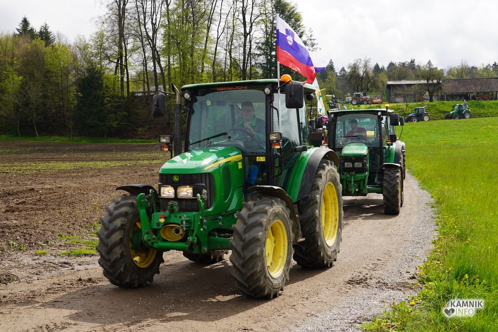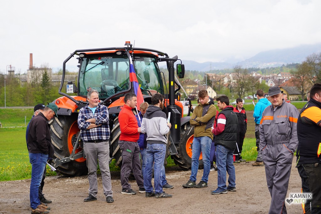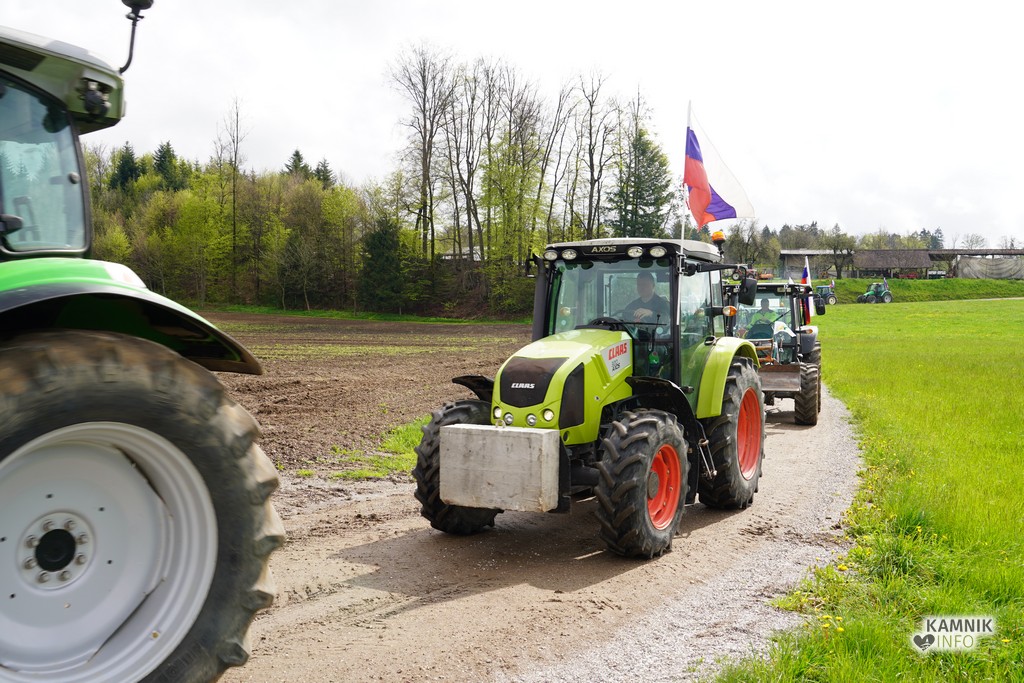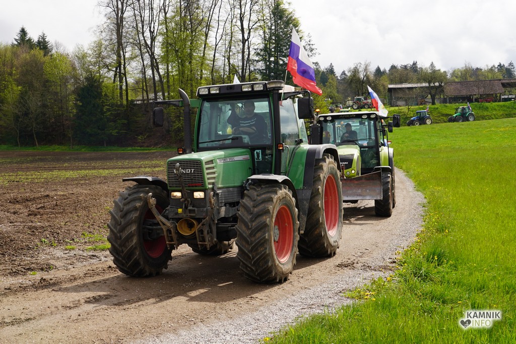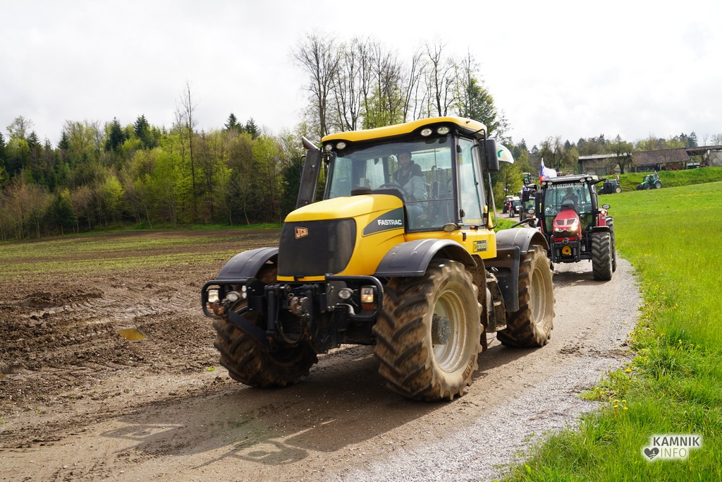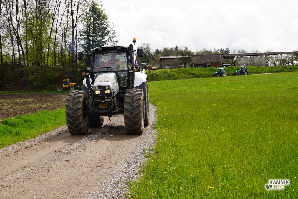 Na današnji protestni shod v Ljubljano se je s svojimi traktorji podalo tudi kakih trideset kamniških kmetov, ki so se dopoldne zbrali v Volčjem Potoku.