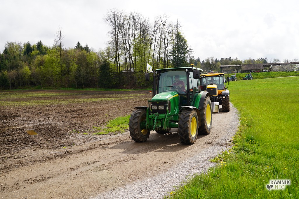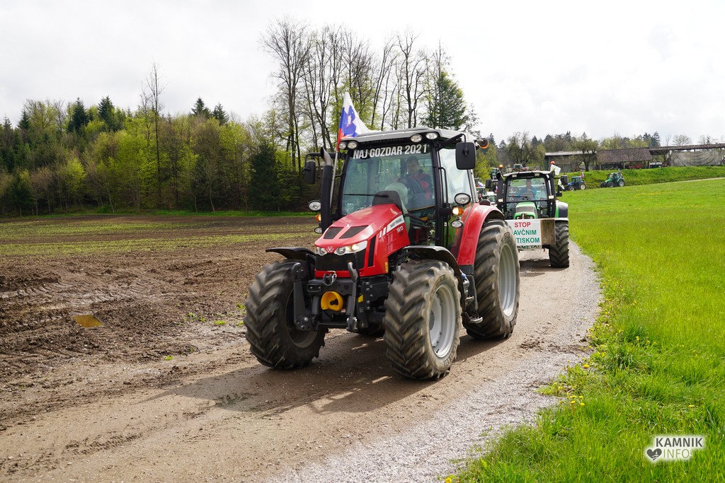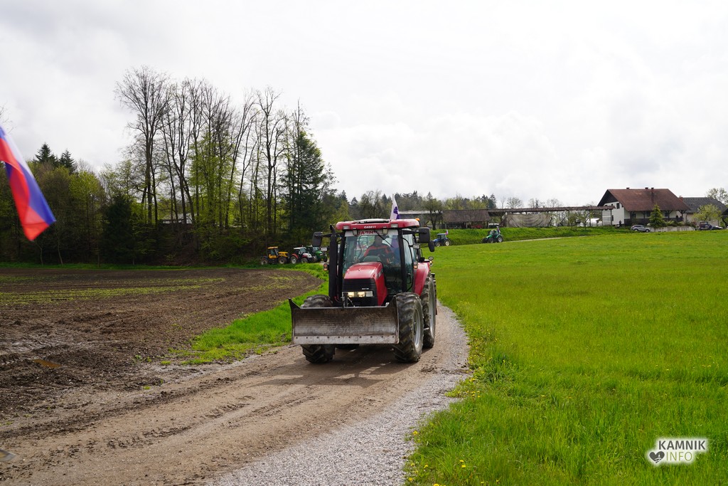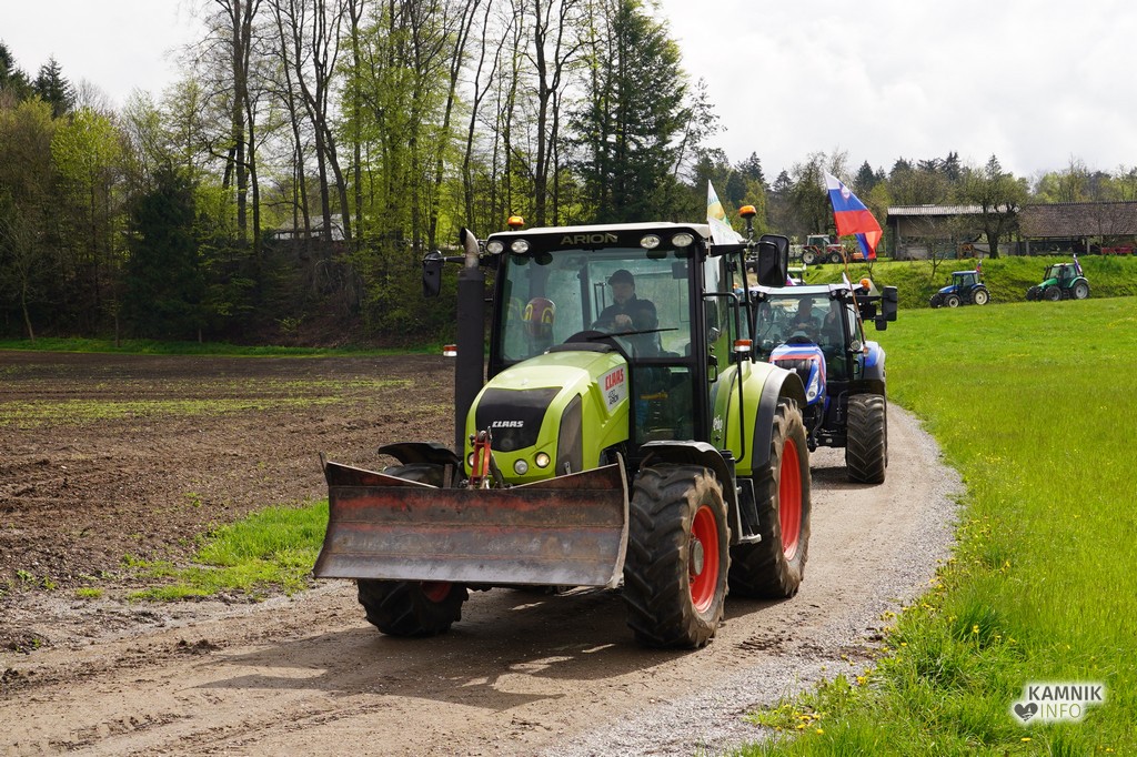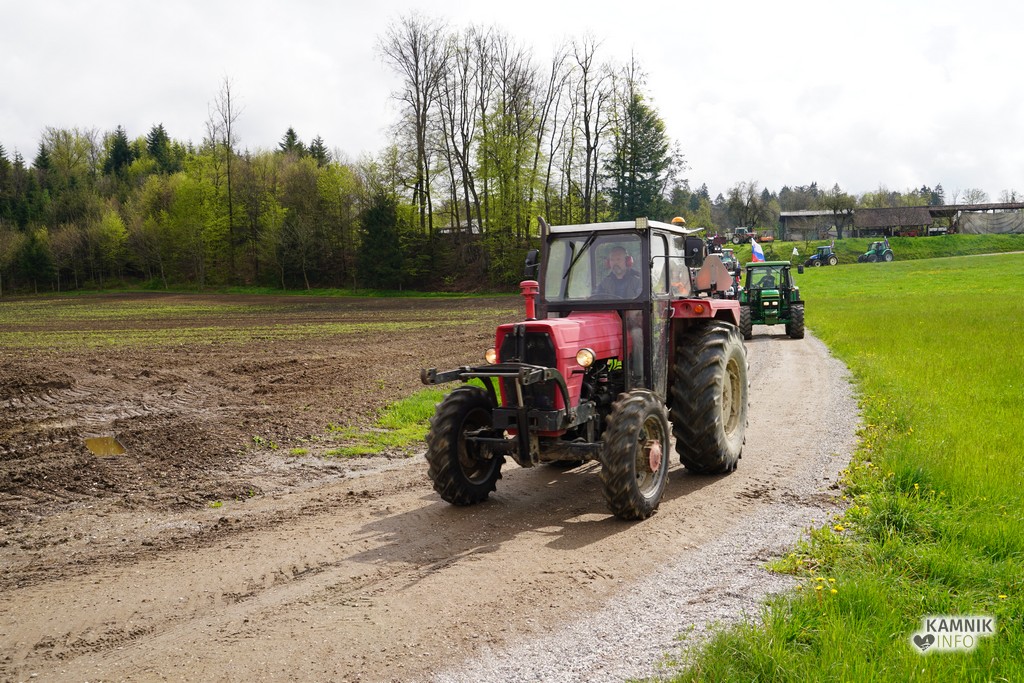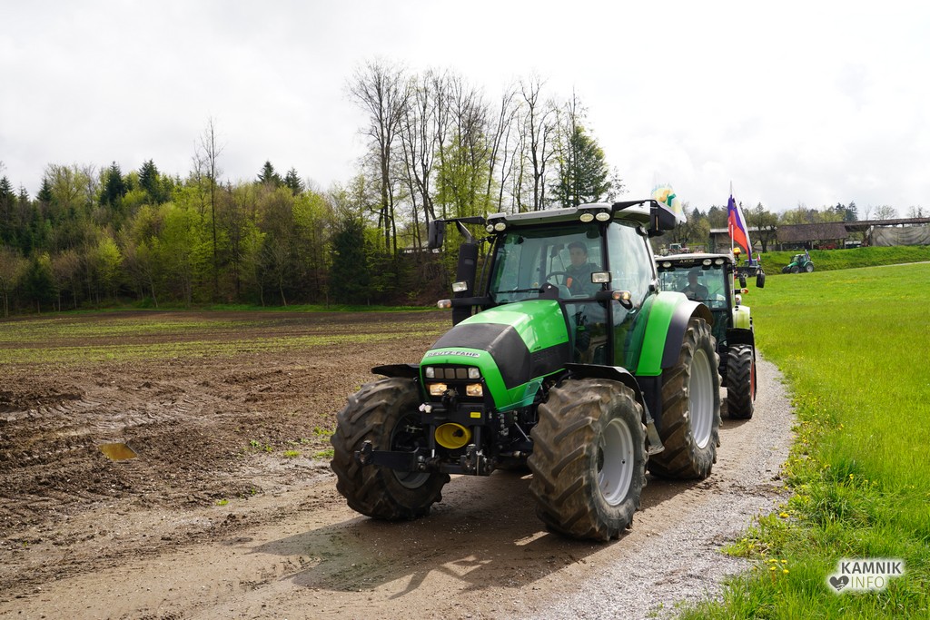 Na današnji protestni shod v Ljubljano se je s svojimi traktorji podalo tudi kakih trideset kamniških kmetov, ki so se dopoldne zbrali v Volčjem Potoku.