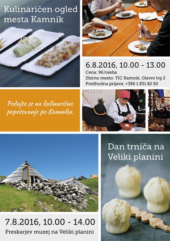 Prijave na kulinarični ogled sprejemamo do petka, 5. avgusta, v Turistično informativnem centru Kamnik ali pa na telefonsko številko 031/388-324. Ne zamudite izvrstne priložnosti za spoznavanje lokalne kulinarike Kamnika in se nam pridružite v soboto, 6. avgusta, ob 10. uri na Glavnem trgu.