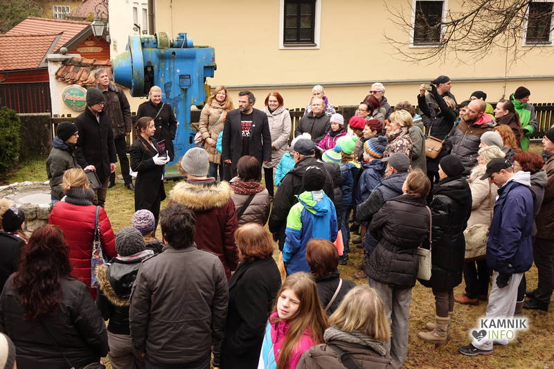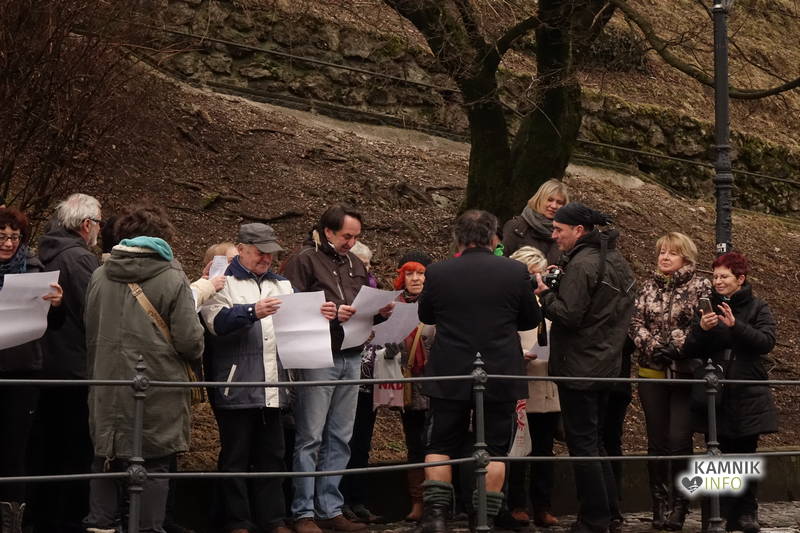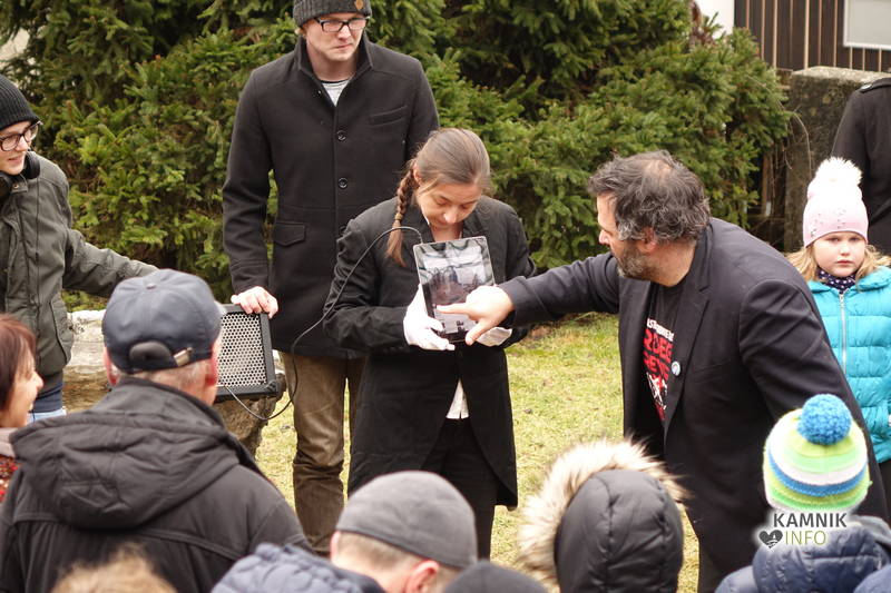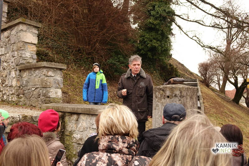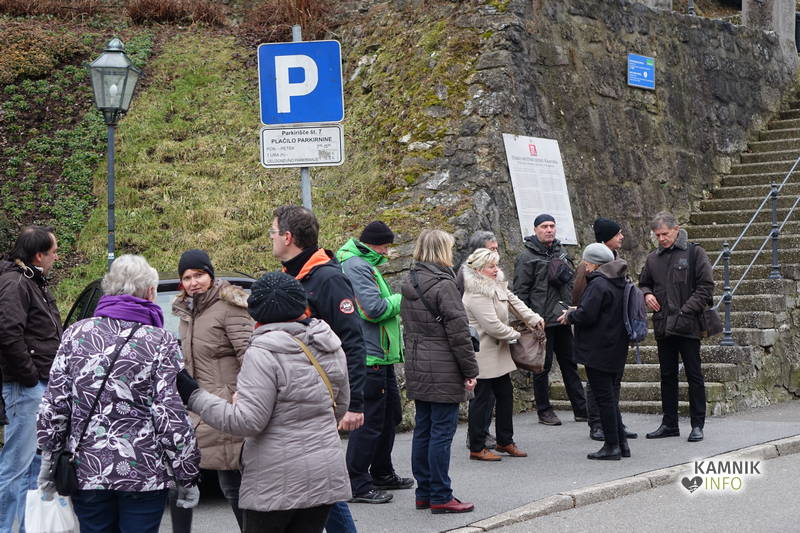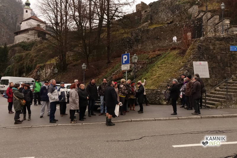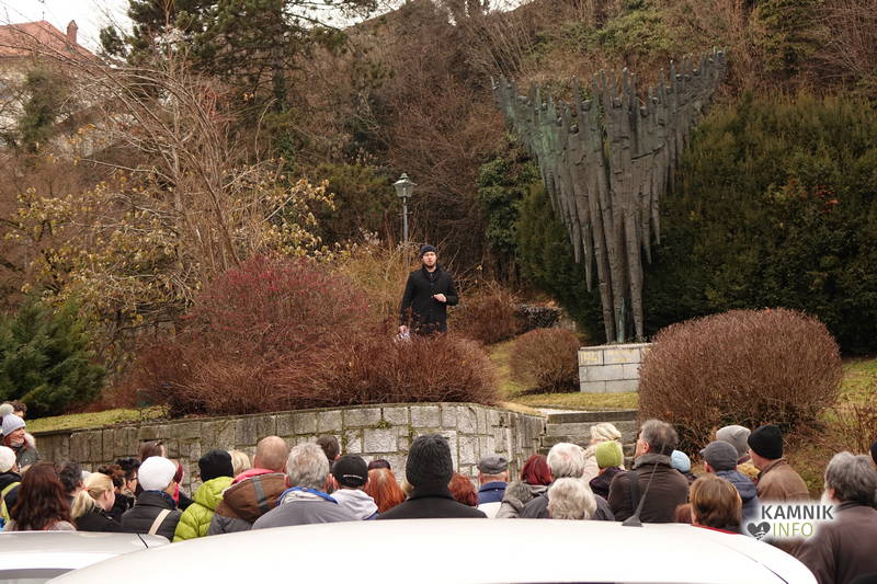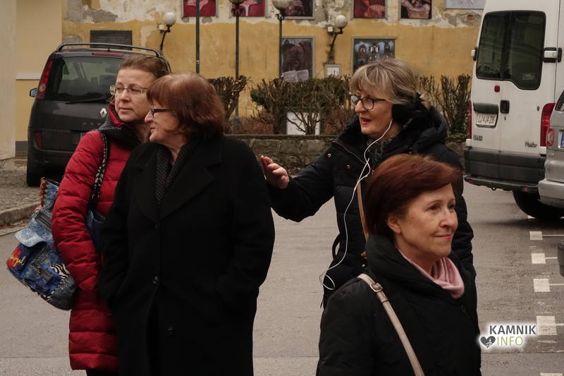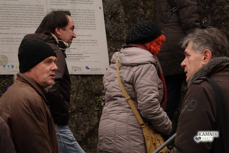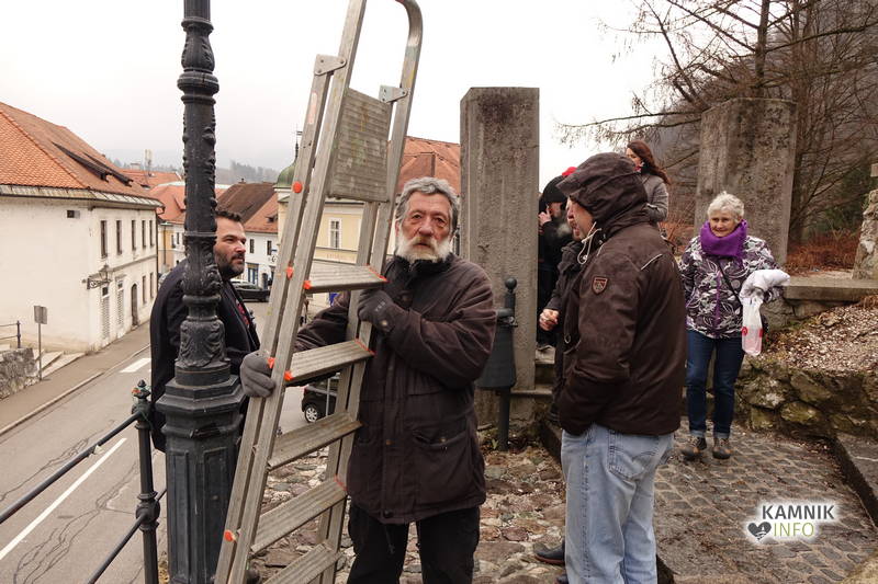 Neprizanesljivi scenaristi kulturnega dogodka so zbrano druščino, brez morebitnega, nenazadnje pa s kulturnim udejstvovanjem nesporno zasluženega prigrizka in osvežilne pijače, iz toplo vabečega zavetja božje roke, neusmiljeno usmerili in odvedli do zadnje postaje – to je Kamniškemu kulturnemu krogu pridalo pridih domala dantejevskega krožišča – spominskega stebrišča kamniških propilej, kjer v bronasti osamljenosti zeha dr. Starovasnik, ki mu je bila že pred desetletji obljubljena glavata druščina znamenitih Kamničank in Kamničanov.