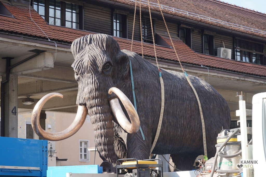 Postavitev, ki smo jo na našem FB profilu prenašali tudi v živo, je potekala brez posebnosti in težav, sama skulptura pa temelji na okostju mamuta, ki je bilo leta 1938, pri izgradnji mostu, najdeno v le v streljaj oddaljenih Nevljah pri Kamniku.