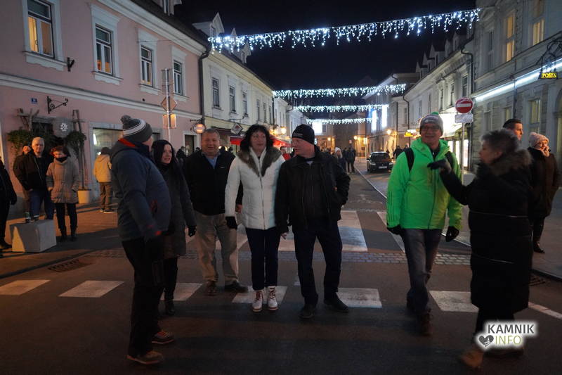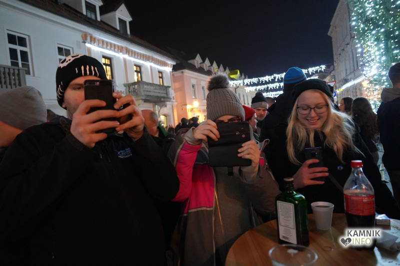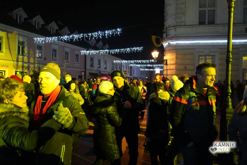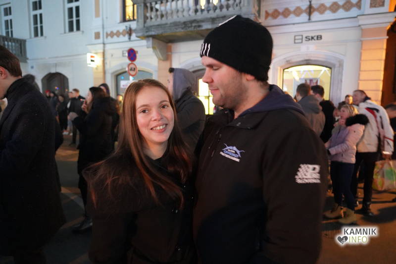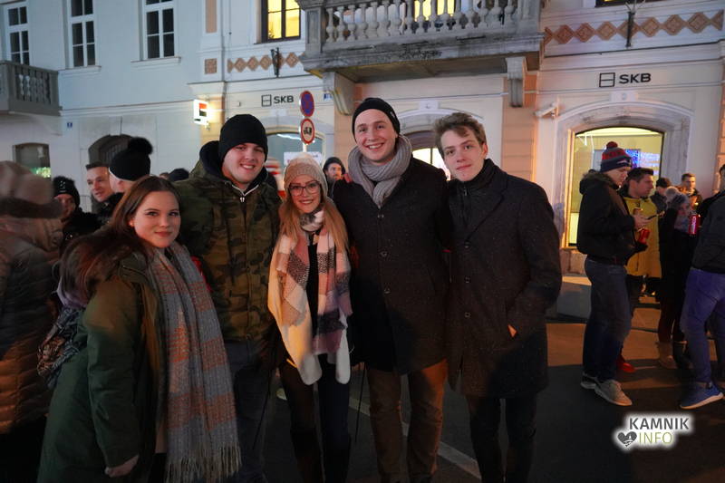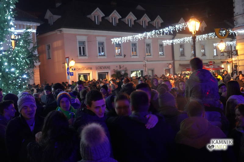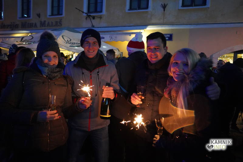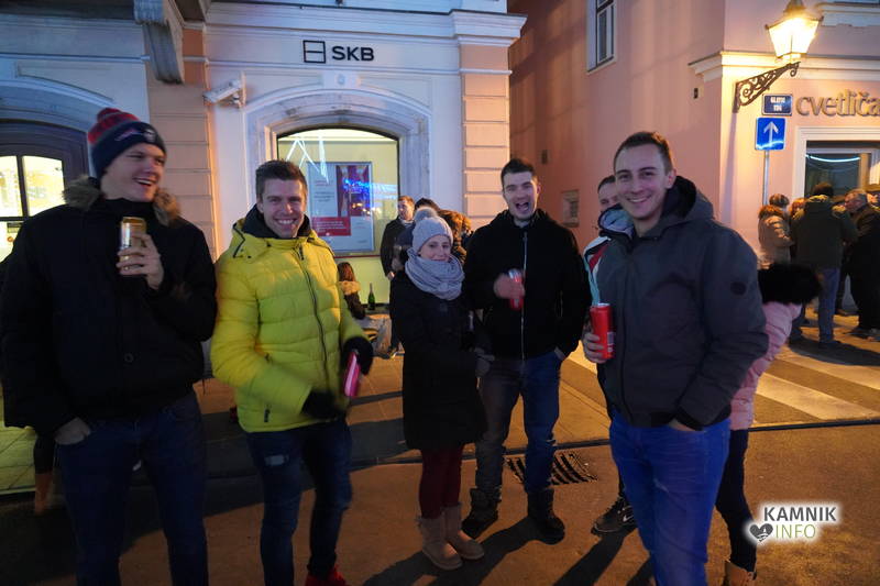 Bolj ko se je bližala polnoč, bolj se je kamniški Glavni trg, na katerem so vesele silvestrske viže godli člani zasedbe Joker, polnil, nanj pa so se iz vseh strani zgrinjale večje ali manjše skupine dobro razpoloženih občank in občanov, ki so se, kot je v Kamniku v navadi nekako zadnji dve desetletji, prišli posloviti od starega ter pozdravit oz. pričakat novo leto.