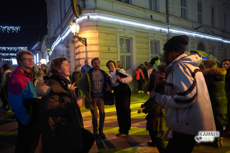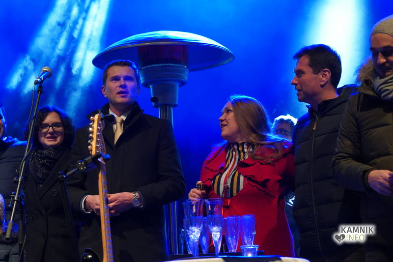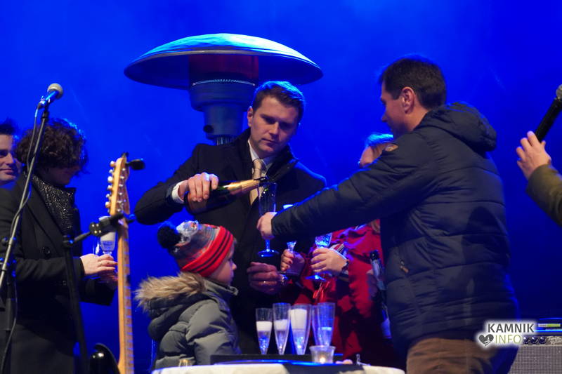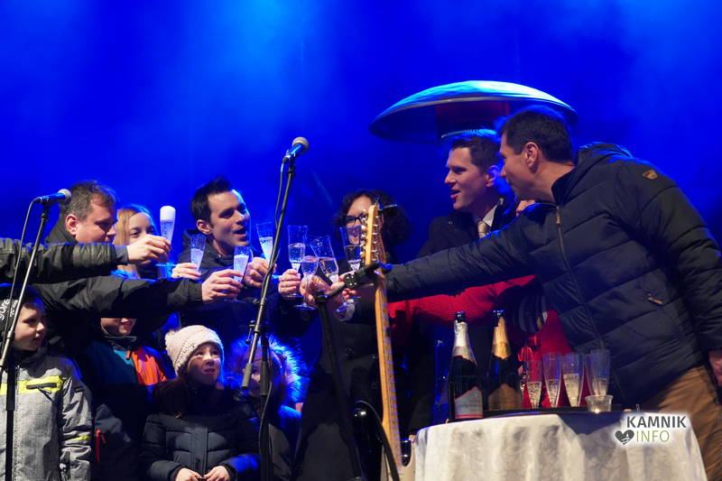 Letošnje silvestrovanje je bilo vsaj nekoliko posebno tudi zaradi tega, ker je zbrano množico prvič v svoji županski karieri nagovoril sveže pečeni župan Matej Slapar, ki je vsem skupaj zaželel srečno novo leto, nato pa skupaj z množico odštel zadnje sekunde starega leta, ko je s prihodom novega nastopil čas za izmenjevanje poljubov, objemov in lepih želja ter seveda tudi za veselo nazdravljanje s penino.