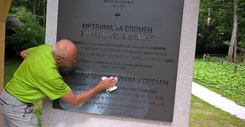 Po poskusu z neagresivnim organskim čistilom, ki ga nekoliko bolj naravovarstveno osveščene gospodinje uporabljajo v gospodinjstvu, je ugotovil, da se bo barvo, ki so jo na napisno tablo napackali neznani objestneži, uspelo odstraniti, ne da bi pri tem jeklena napisna plošča utrpela kakršno koli škodo. Packarijo, ki je kazila kapelico, je tako uspel v celoti odstraniti, pri svojem početju, pa ni bil sam, saj mu je pri delu z veseljem pomagala tudi družina iz Kamnika, s katero se je naključno srečal pri kapelici.