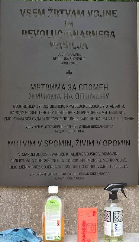 Najbrž bi bila kapelica popacana še kar nekaj časa, če se ne bi njenega čiščenja danes samoiniciativno lotil Kamničan Matevž Skamen, ki se je, takoj ko se je vrnil z dopusta, oborožil z gobico in organskim čistilom ter se kolesom podal v Kamniško Bistrico, kjer se je ročno lotil odstranjevanja packarije na plošči z napisom.