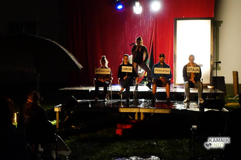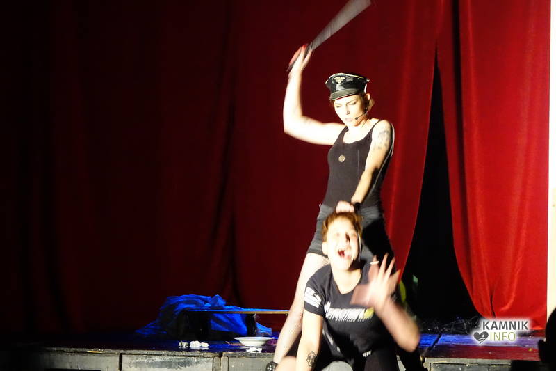 V atriju dvorca Katzenberg, nedavno tega na dražbi (raz)prodane upravne stavbe smodnišnice, ki je v zadnjem letu, v okviru skromnih ter povečini improvizirano izkoriščenih danih možnosti, katerih glavni adut je predvsem dragoceni, žal pa najbrž že zapravljen in izgubljen prostor, se je v petek zvečer, nalivu navkljub, odvila imenitna, obenem pa grenko pomenljiva kabarejska predstava – Katzen kabaret na sodu smodnika, s katero so mladi kamniški ustvarjalci, z neusmiljenim odstiranjem pajčevin z zaprašenega ogledala vsakdana, prisolili skelečo zaušnico banalnosti, ne le kamniške, ampak tudi slovenske groteskne stvarnosti, ki ji vse večja splošna nerazgledanost, zaplankanost in domala krdelno nagonska, če že ne kar dedno pogojena zarukanost našega slepočrevja, nadeva vse močnejše vajeti strahu in ozkogledne plašnice predsodkov.