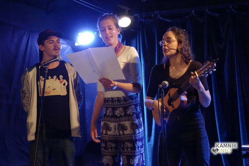 Varieté so povezovali mednarodni prostovoljci Lena, Ted in Mariel, ki so večer popestrili, pod mentorskim vodstvom Neže Vavpetič, s skeči, improvizacijo, anekdotami in glasbenimi vložki.