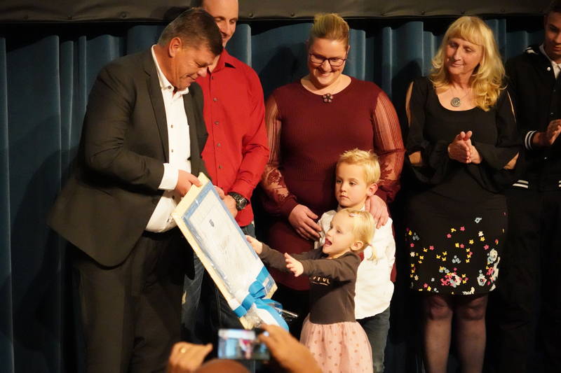 Po ogledu filma se je župan Matej Slapar družini Papež in Klubu gorskih tekačev Papež, obenem pa tudi vsem prostovoljcem, ki so sodelovali pri organizaciji, ne le dvajsetih tekov na Grintovec, ampak tudi svetovnega in evropskega prvenstva v gorskih tekih na Veliko planino, zahvalil in jim izročil za izjemno organizacijo dvajsetih tekov na Grintovec, saj so z uspešnimi gorsko-tekaškimi zgodbami naši občini dodali poseben pečat in jo popeljali izven njenih meja, vse skupaj pa pospremil z besedami: