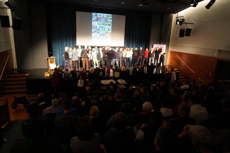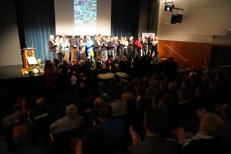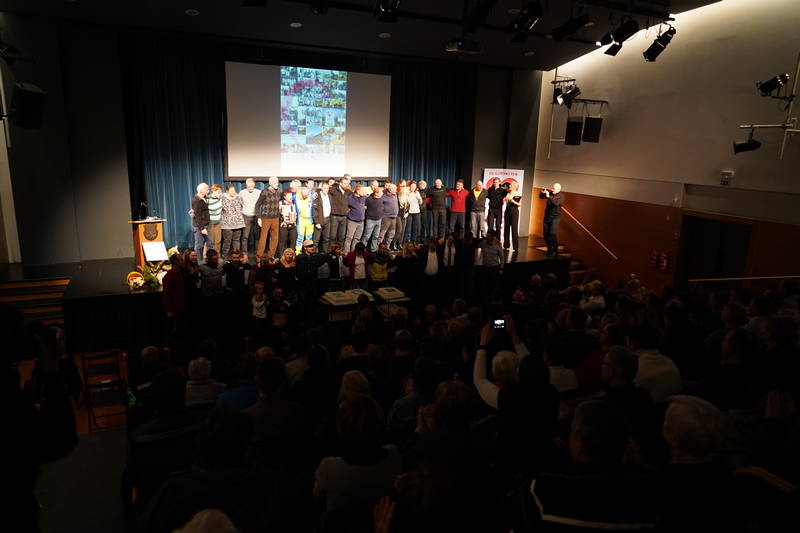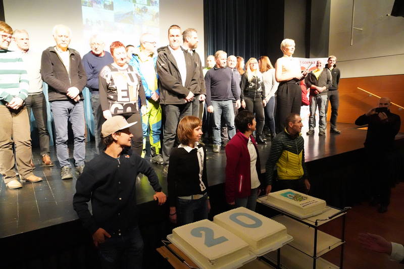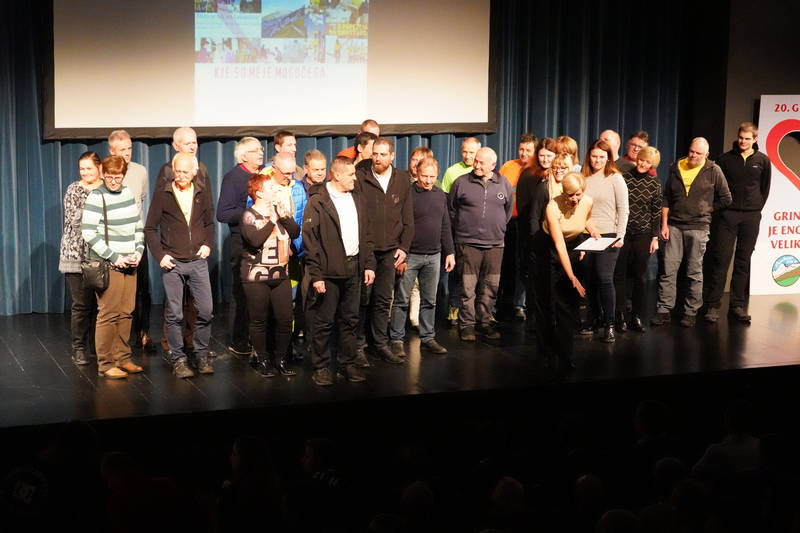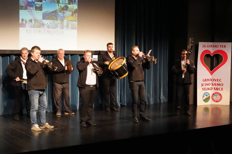 Ob koncu prireditve, ki so jo popestrili tudi stranjski godbeniki, so bili na oder povabljeni predstavniki vseh, ki so bili v vseh teh letih nepogrešljiv organizacijski steber tekov na Grintovec, od gorskih reševalcev, markacistov, časomerilcev, prijavne službe, obdelovalcev podatkov, zdravnikov, reševalcev nujne medicinske pomoči, traserji, časomerilci, skrbniki okrepčevalnic, nosači, redarji, gasilci, godbeniki, sponzorji… Pravzaprav bi morala priti na oder domala cela dvorana Kulturnega doma Kamnik, vendar je bil oder za kaj takšnega premajhen.