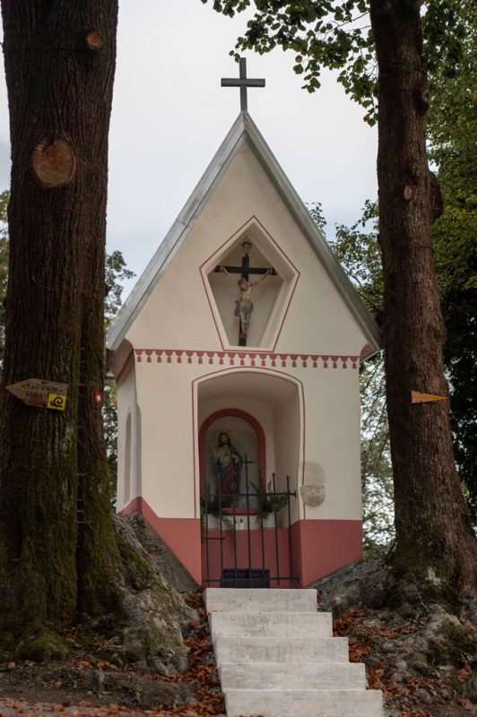 Spomeniško zaščitena kamnita kapelica zaprtega tipa s trikapno streho, stisnjena med korenine in debli dveh tudi zaščitenih lip na prelazu Strmec, je bila še štiri mesece nazaj v zelo slabem stanju, poškodovano je bilo leseno razpelo z lesenim polihromiranim korpusom v zgornji niši in kip Srca Jezusovega v zastekljenem delu spodnje niše. Danes pa obnovljena in bleščeča pozdravlja pohodnike, ki gredo mimo na hrib Jasovnik ali po evropski pešpoti E6, pa tudi vse, ki z avtomobilom iščejo bližnjico do Trojan ali avtoceste.