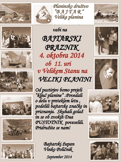 4. oktobra 2014 ob 11. uri se bomo zbrali v Velikem stanu na Veliki planini, od pastirjev prejeli »ključ planine«, vse prisotne seznanili z njihovim delom v preteklem letu, podelili bajtarske značke, priznanja in zahvale.