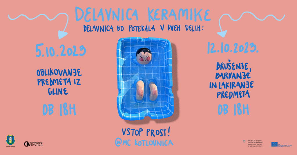 čet05okt18:00čet20:00Brezplačna delavnica keramike18:00 - 20:00 Mladinski center Kotlovnica