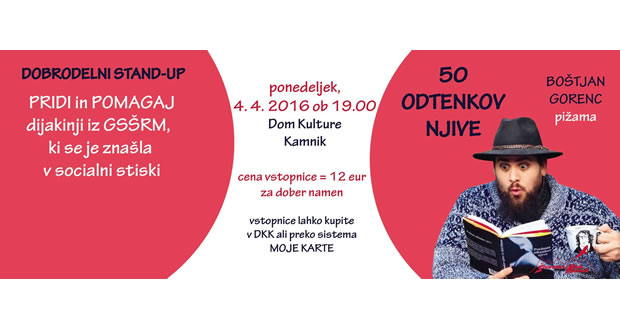 V ponedeljek, 04.04.2016 bomo v stilu zaključili dobrodelni mesec marec. Boštjan Gorenc Pižama nas bo zabaval ob 19h v Domu kulture Kamnik.