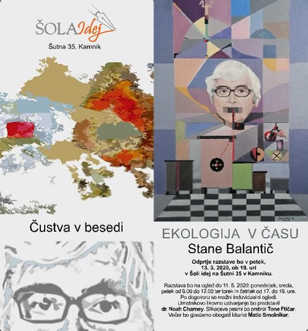 Vabljeni na odprtje razstave kamniškega likovnika in vsestranskega ustvarjalca Staneta Balantiča, z naslovom Ekologija v času, ki bo v petek, 13.3.2020, ob 19.00 uri v Šoli Idej na Šutni 35 v Kamniku.