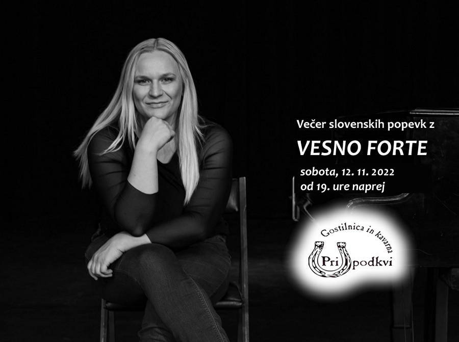 Gostilnica Pri Podkvi vas v soboto, 12. 11. 2022, ob 19. uri vabi na pevsko kulinarični večer v družbi s pevko Vesno Forte in slovenskimi popevkami. Ob zimzelenih melodijah slovenskih popevk