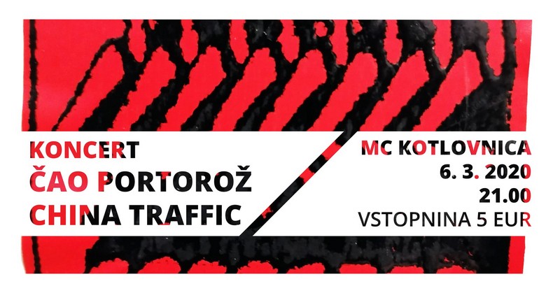 pet06mar21:00pet23:59Koncert: Čao Portorož in China Traffic21:00 - 23:59 Mladinski center Kotlovnica