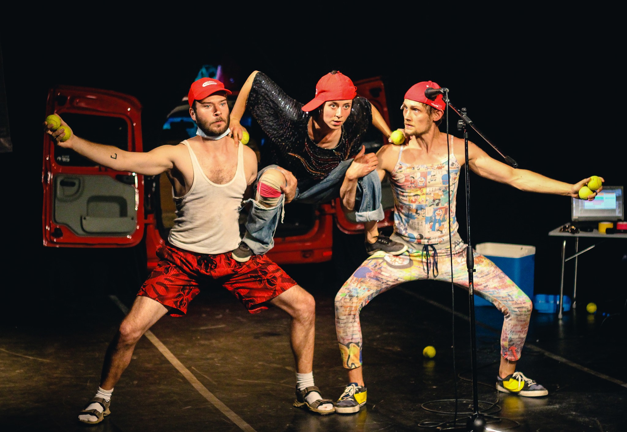 Nova kreacija kolektiva Mismo Nismo cirkuški ansambel identificira kot girl-boyband, pri čemer se petju, recitaciji in ostali komunikaciji z občinstvom, tipični za tovrstne odrske združbe, enakovredno pridruži umetnost žongliranja. Žongliranje poteka