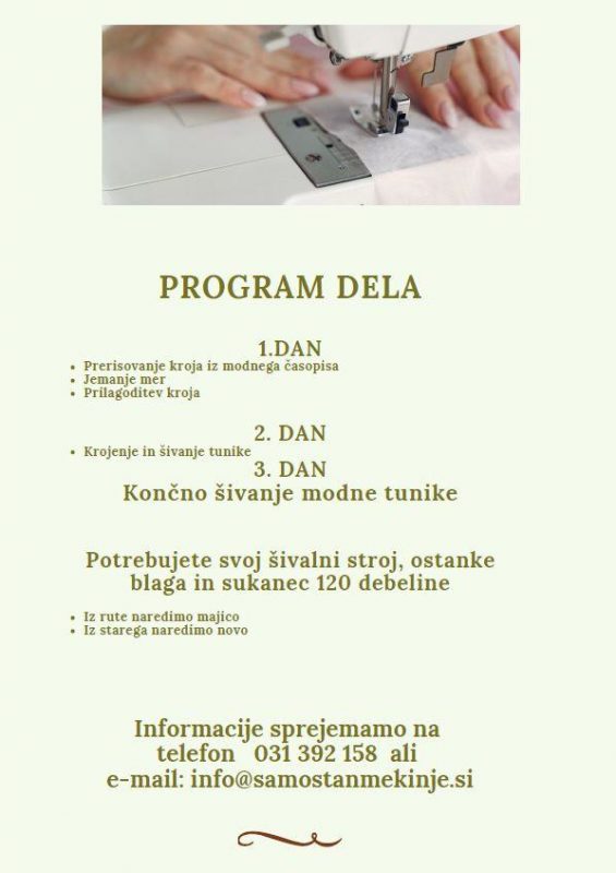 Samostan Meknje vas vabi na 9-urni nadaljevalni tečaj šivanja in oblikovanja.