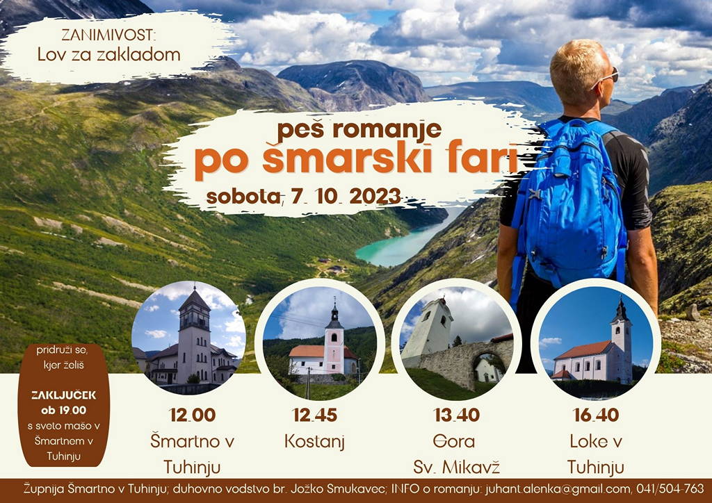 Župnija Šmartno v Tuhinju vas vabi na romanje po šmarski fari oz. na krožno pot od sv. Martina v Šmartnem v Tuhinju mimo sv. Doroteje v Kostanju, sv. Miklavža na