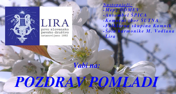 Leto je naokoli in zopet bomo poskušali pregnati zimo in priklicati pomlad z našo že tradicionalno prireditvijo POZDRAV POMLADI na Kamniškem Glavnem trgu v nedeljo 20. marca ob 16.00 uri. V goste smo tokrat povabili zanimive goste, ki jim boste, verjamemo z veseljem prisluhnili.