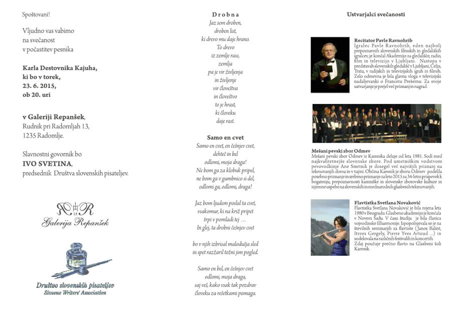 Vljudno vas vabimo na svečanost v počastitev pesnika Karla Destovnika – Kajuha,