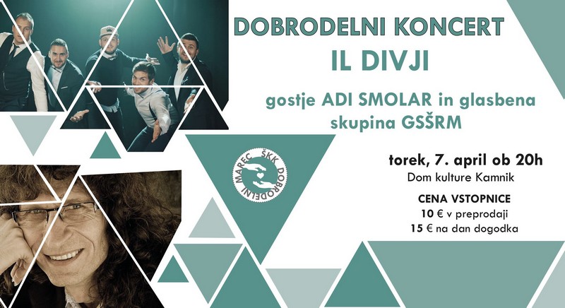 Dobrodelni marec Študentskega kluba Kamnik bomo zaključili z glasbenim večerom, kjer bodo nastopili IL DIVJI, Adi Smolar in glasbena skupina GSŠRM.