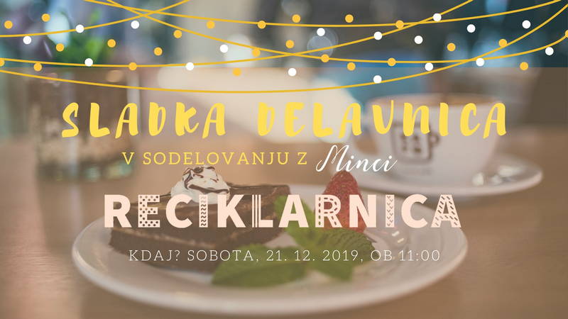 V soboto, 21. 12., ob 11.00 uri, bo v Reciklarnici delavnica sladkih dobrot. Delavnico bo vodila Minci in predstavila peko dveh veganskih dobrot: browniji in ajdovi piškoti. Pekli bomo