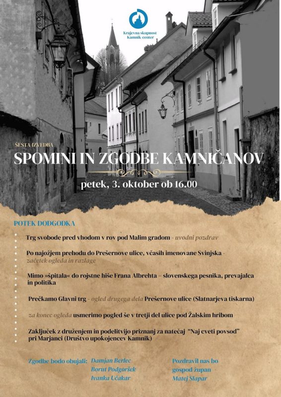 pet03okt16:00pet19:00Spomini in zgodbe Kamničanov - nekoč (šesta izvedba)16:00 - 19:00 Trg svobode