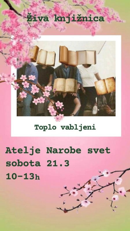 sob21mar10:00sob13:00Živa knjižnica v ateljeju Narobe svet na Šutni10:00 - 13:00 Narobe svet