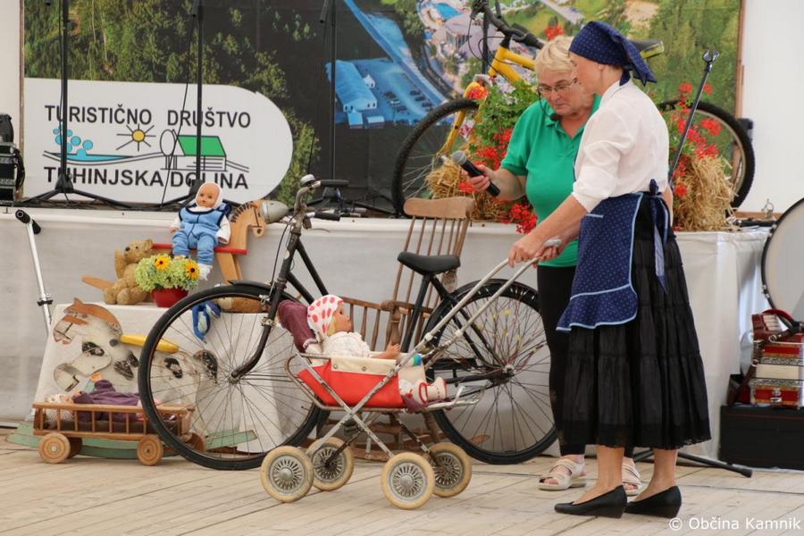 Ob osrednji prireditvi so nas sodelujoči popeljali v čase, ko so nas vozili še z otroškimi vozički, se kasneje vozili s kolesi za odrasle, saj je takrat le malokdo imel otroško kolo. Kolo pa je bilo prevozno sredstvo tudi za tiste, ki so na terenu opravljali svoje delo, prav pa je prišel tudi fantom, ki so hodili v vas ter ob nedeljah za k maši sli na druge prireditvi na vasi.