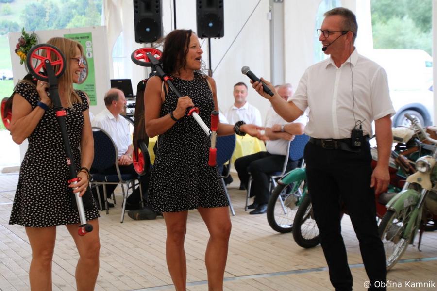 Zbrane sta pozdravila in nagovorila v. d. direktorja Zavoda za turizem in šport Kamnik Luka Svetec in predsednik Turističnega društva Tuhinjska dolina Ivan Hribar. Župan Matej Slapar pa je ob tej priložnosti dejal: »Spoštovani gostje, spoštovani člani Turističnega društva Tuhinjska dolina, ste ena bolj aktivnih turističnih društev na Kamniškem in tukaj gre vsa pohvala vsem članom in vsem 6 sekcijam, ki pridno delate iz dneva v dan in iz tedna v teden. Vsako leto nam pripraviti kakšno zanimivo etnološko tem, kako je bilo nekoč. Narod in skupnost, ki se ne zaveda svojih korenin, kaj je bilo včasih in koliko je bilo vredno se potruditi, tisti tudi ne more graditi na prihodnosti. Vi znate graditi. Letošnje leto je tema kolesarstvo in kolo. Včasih je bilo kolo prevozno sredstvo, letos je kolo pomembno za rekreacijo. Tudi Občina Kamnik veliko vlaga v trajnostne oblike mobilnosti, saj pospešeno gradimo dve večji kolesarski povezavi od Kamnik do Ljubljane ter od Kamnika do Godiča. V idejnih zasnovah iščemo rešitve za kolesarsko povezavo od Kamnika do Vranskega. Verjamem, da bo tudi ta rekreacijska in pohodniška pot v doglednem času ogledala luč sveta. Kolesarstvo je v vzponu in tudi Terme Snovik s tovrstnim turizmom zaveda. Naj vas ob tej priložnosti povabim še na 50. Dneve narodnih noš in oblačilne dediščine, saj bomo z vrhunsko prireditvijo, s tridnevnim programom in zaključkom velike povorke poudarjali pomen etnološke dediščine Slovenije.«