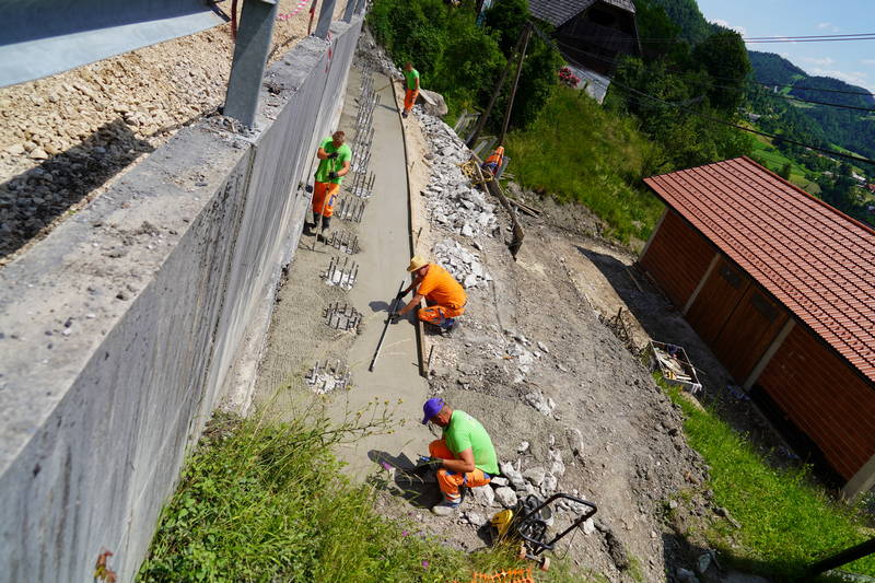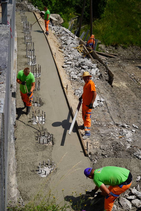 Še vedno smo aktivni na usadu v Palovčah. Potem, ko so bili izvedeni vsi piloti, se je v tem tednu, skladno z napovedmi, izvajalo pripravo pilotov (cca. 30 cm), podložnega betona in betonažo vezi. V okviru sanacije nadvozne ceste je bilo potrebno odstraniti obstoječi asfalt in slab material ter nasuti in utrditi tampon. Vsa dela tečejo skladno s planom, zato se zaključek del (asfaltiranje ceste in sanacija zidu) na tem projektu, odvisno od vremena, pričakuje v roku že tedna ali dveh.