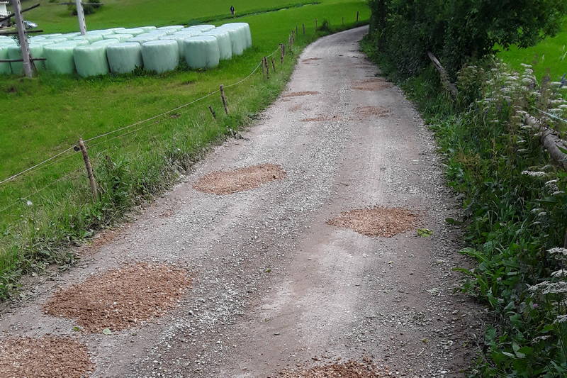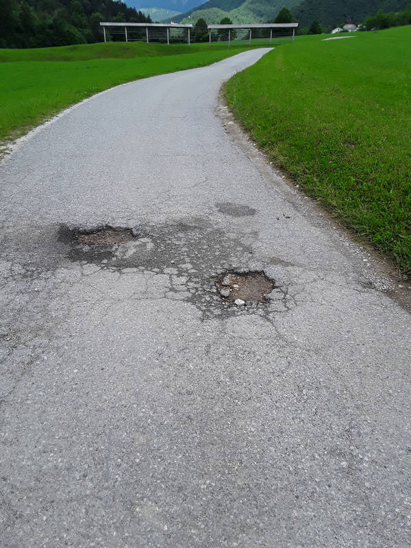 Pojdimo najprej na lokalne ceste, kjer se, na podlagi ugotovitev rednega pregleda cest in skladno z letnim planom vzdrževanja, izvaja vse potrebno, da se 0hranjajo njihove prometne, tehnične in varnostne lastnosti. Tudi v tem tednu je bilo potrebno zakrpati udarne jame v Gozdu in na relaciji Špitalič – Rovt, za kar je naša ekipa poskrbela v pričetku tedna, ter na Brezjah nad Kamnikom.